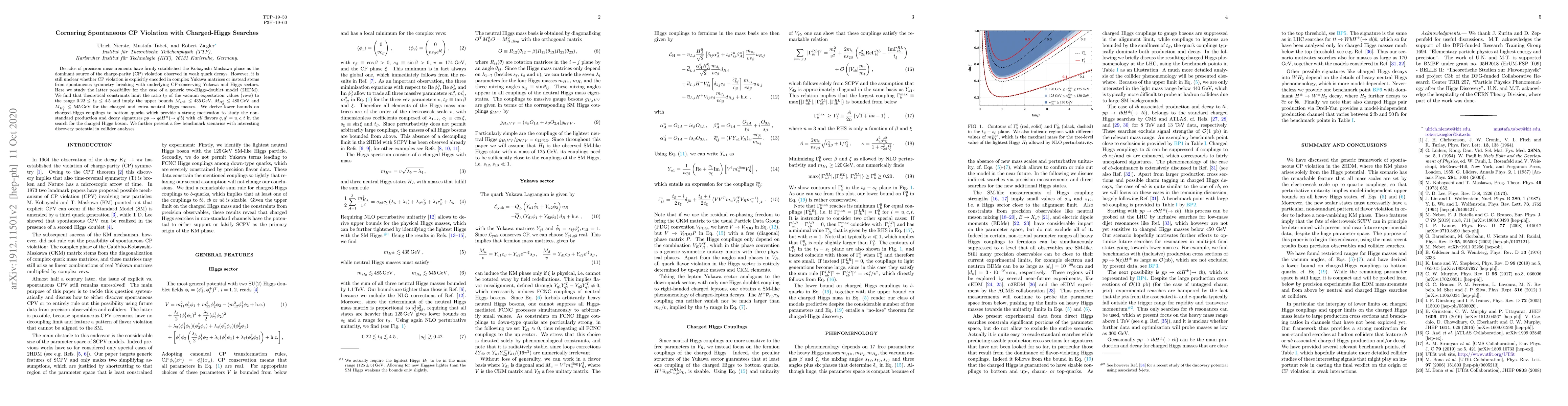 Decades of precision measurements have firmly established the Kobayashi-Maskawa phase as the dominant source of the CP violation observed in weak quark decays. However, it is still unclear whether CP violation is explicitly encoded in complex Yukawa matrices or instead stems from spontaneous symmetry breaking with underlying CP-conserving Yukawa and Higgs sectors. Here we study the latter possibility for the case of a generic two-Higgs-doublet model. We find that theoretical constraints limit the ratio $t_\beta$ of the vacuum expectation values to the range $0.22 \leq t_\beta \leq 4.5$ and imply the upper bounds $M_{H^\pm}\leq 435$ GeV, $M_{H_{2}^0} \leq 485$ GeV and $M_{H_{3}^0} \leq 545$ GeV for the charged and extra neutral Higgs masses. We derive lower bounds on charged-Higgs couplings to bottom quarks which provide a strong motivation to study the non-standard production and decay signatures $p p \to qb H^\pm(\to q^\prime b)$ with all flavors $q,q^\prime=u,c,t$ in the search for the charged Higgs boson. We further present a few benchmark scenarios with interesting discovery potential in collider analyses.