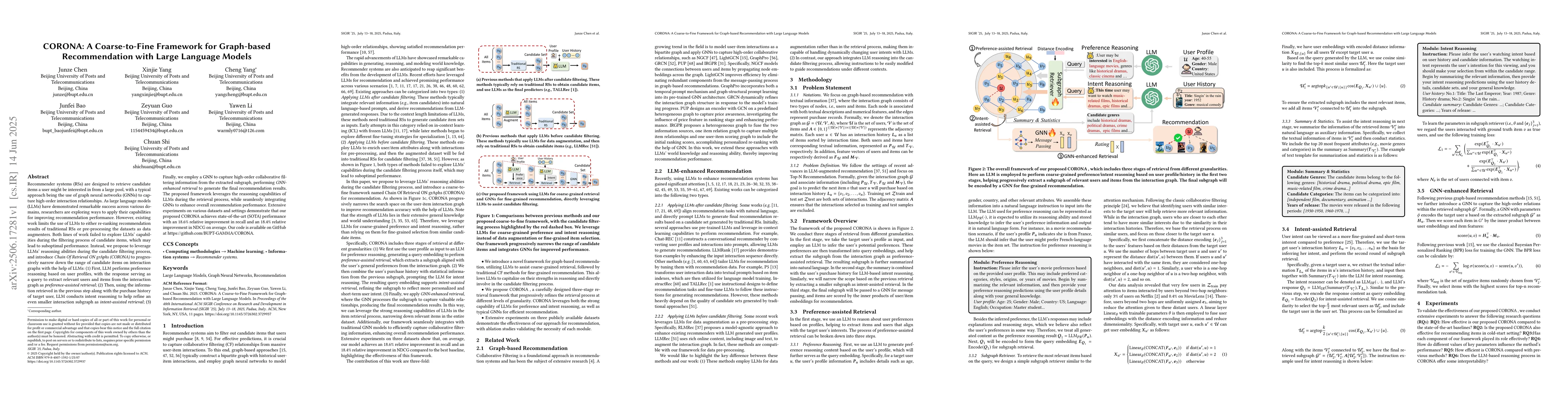 Recommender systems (RSs) are designed to retrieve candidate items a user might be interested in from a large pool. A common approach is using graph neural networks (GNNs) to capture high-order interaction relationships. As large language models (LLMs) have shown strong capabilities across domains, researchers are exploring their use to enhance recommendation. However, prior work limits LLMs to re-ranking results or dataset augmentation, failing to utilize their power during candidate filtering - which may lead to suboptimal performance. Instead, we propose to leverage LLMs' reasoning abilities during the candidate filtering process, and introduce Chain Of Retrieval ON grAphs (CORONA) to progressively narrow down the range of candidate items on interaction graphs with the help of LLMs: (1) First, LLM performs preference reasoning based on user profiles, with the response serving as a query to extract relevant users and items from the interaction graph as preference-assisted retrieval; (2) Then, using the information retrieved in the previous step along with the purchase history of target user, LLM conducts intent reasoning to help refine an even smaller interaction subgraph as intent-assisted retrieval; (3) Finally, we employ a GNN to capture high-order collaborative filtering information from the extracted subgraph, performing GNN-enhanced retrieval to generate the final recommendation results. The proposed framework leverages the reasoning capabilities of LLMs during the retrieval process, while seamlessly integrating GNNs to enhance overall recommendation performance. Extensive experiments on various datasets and settings demonstrate that our proposed CORONA achieves state-of-the-art performance with an 18.6% relative improvement in recall and an 18.4% relative improvement in NDCG on average.