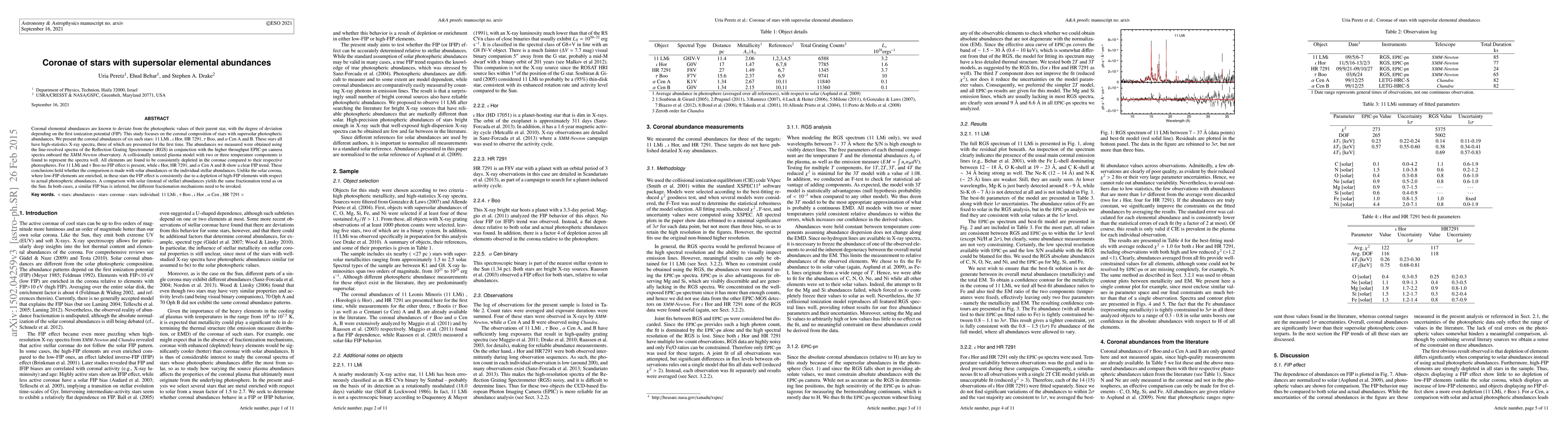 Coronal elemental abundances are known to deviate from the photospheric values of their parent star, with the degree of deviation depending on the First Ionization Potential (FIP). This study focuses on the coronal composition of stars with super-solar photospheric abundances. We present the coronal abundances of six such stars: 11 LMi, $\iota$ Hor, HR 7291, $\tau$ Boo, and $\alpha$ Cen A and B. These stars all have high-statistics X-ray spectra, three of which are presented for the first time. The abundances measured in this paper are obtained using the line-resolved spectra of the Reflection Grating Spectrometer (RGS) in conjunction with the higher throughput EPIC-pn camera spectra on board the XMM-Newton observatory. A collisionally ionized plasma model with two or three temperature components is found to represent the spectra well. All elements are found to be consistently depleted in the coronae compared to their respective photospheres. For 11 LMi and $\tau$ Boo no FIP effect is present, while $\iota$ Hor, HR 7291, and $\alpha$ Cen A and B show a clear FIP trend. These conclusions hold whether the comparison is made with solar abundances or the individual stellar abundances. Unlike the solar corona where low FIP elements are enriched, in these stars the FIP effect is consistently due to a depletion of high FIP elements with respect to actual photospheric abundances. Comparing to solar abundances (instead of stellar) yields the same fractionation trend as on the Sun. In both cases a similar FIP bias is inferred, but different fractionation mechanisms need to be invoked.
