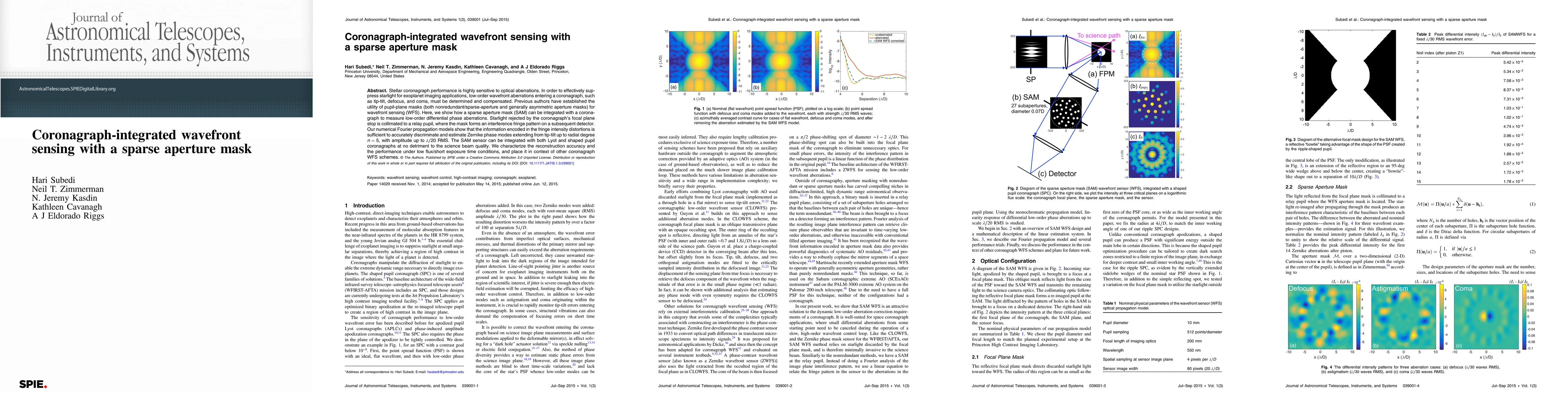 This paper demonstrates the integration of a sparse aperture mask (SAM) with a coronagraph for measuring low-order wavefront aberrations, essential for exoplanet imaging. The SAM sensor effectively estimates differential phase aberrations, providing accurate reconstructions of Zernike modes up to $n=5$ with RMS amplitude of $\lambda/20$, without compromising the science beam quality.