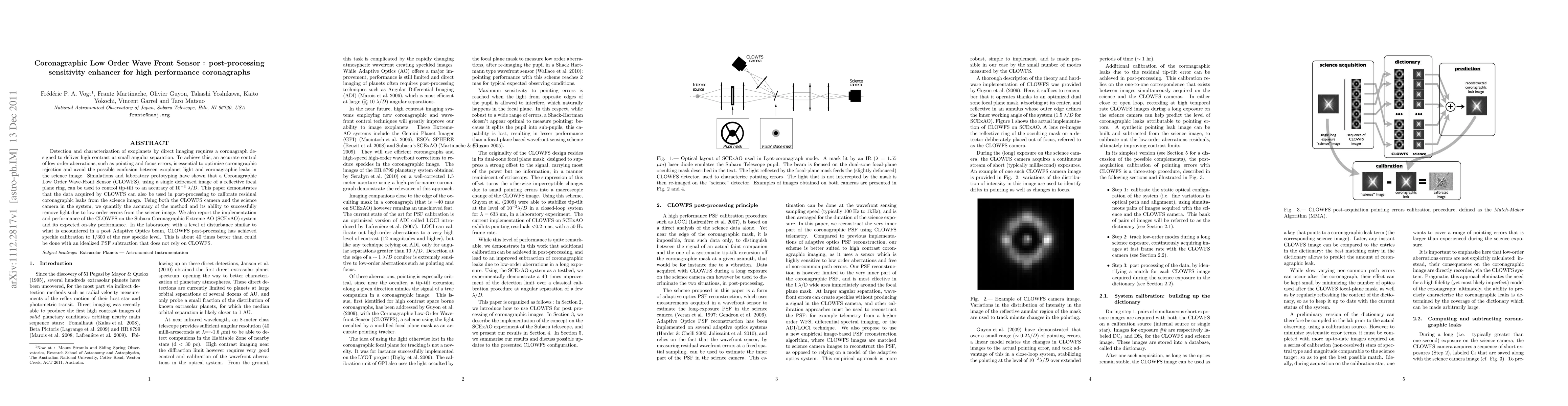 This paper presents a Coronagraphic Low Order Wave-Front Sensor (CLOWFS) that enhances post-processing sensitivity for high-performance coronagraphs, achieving tip-tilt control to an accuracy of 10^{-3} lambda/D. The CLOWFS method successfully removes residual coronagraphic leaks and low order errors from science images, demonstrating a 40-fold improvement over traditional PSF subtraction techniques.
