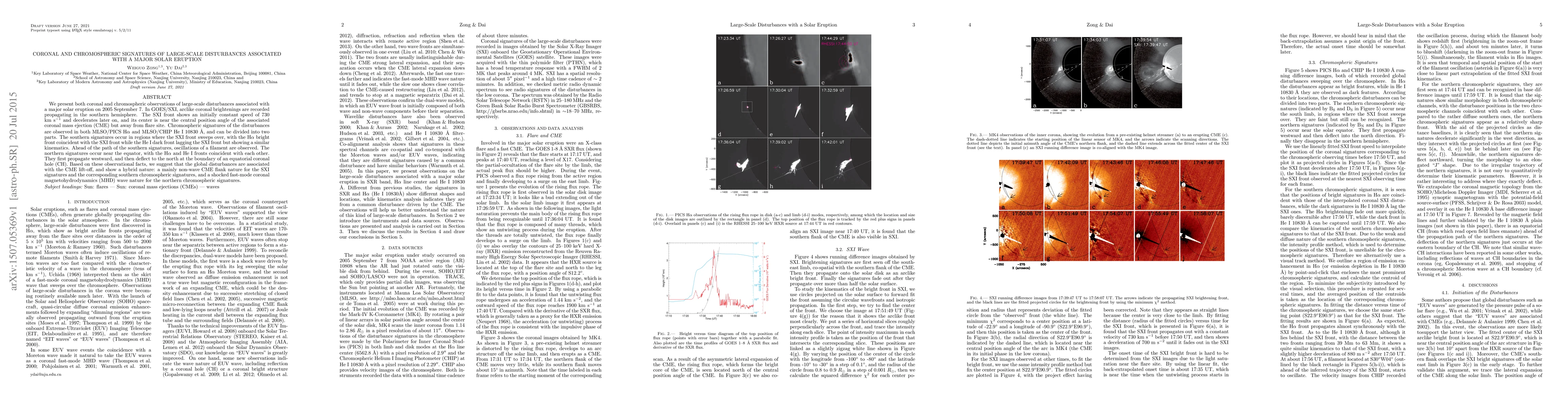 We present both coronal and chromospheric observations of large-scale disturbances associated with a major solar eruption on 2005 September 7. In GOES/SXI, arclike coronal brightenings are recorded propagating in the southern hemisphere. The SXI front shows an initially constant speed of 730 km s$^{-1}$ and decelerates later on, and its center is near the central position angle of the associated coronal mass ejection (CME) but away from flare site. Chromospheric signatures of the disturbances are observed in both MLSO/PICS H$\alpha$ and MLSO/CHIP He I 10830 {\AA}, and can be divided into two parts. The southern signatures occur in regions where the SXI front sweeps over, with the H$\alpha$ bright front coincident with the SXI front while the He I dark front lagging the SXI front but showing a similar kinematics. Ahead of the path of the southern signatures, oscillations of a filament are observed. The northern signatures occur near the equator, with the H$\alpha$ and He I fronts coincident with each other. They first propagate westward, and then deflect to the north at the boundary of an equatorial coronal hole (CH). Based on these observational facts, we suggest that the global disturbances are associated with the CME lift-off, and show a hybrid nature: a mainly non-wave CME flank nature for the SXI signatures and the corresponding southern chromospheric signatures, and a shocked fast-mode coronal magnetohydrodynamics (MHD) wave nature for the northern chromospheric signatures.