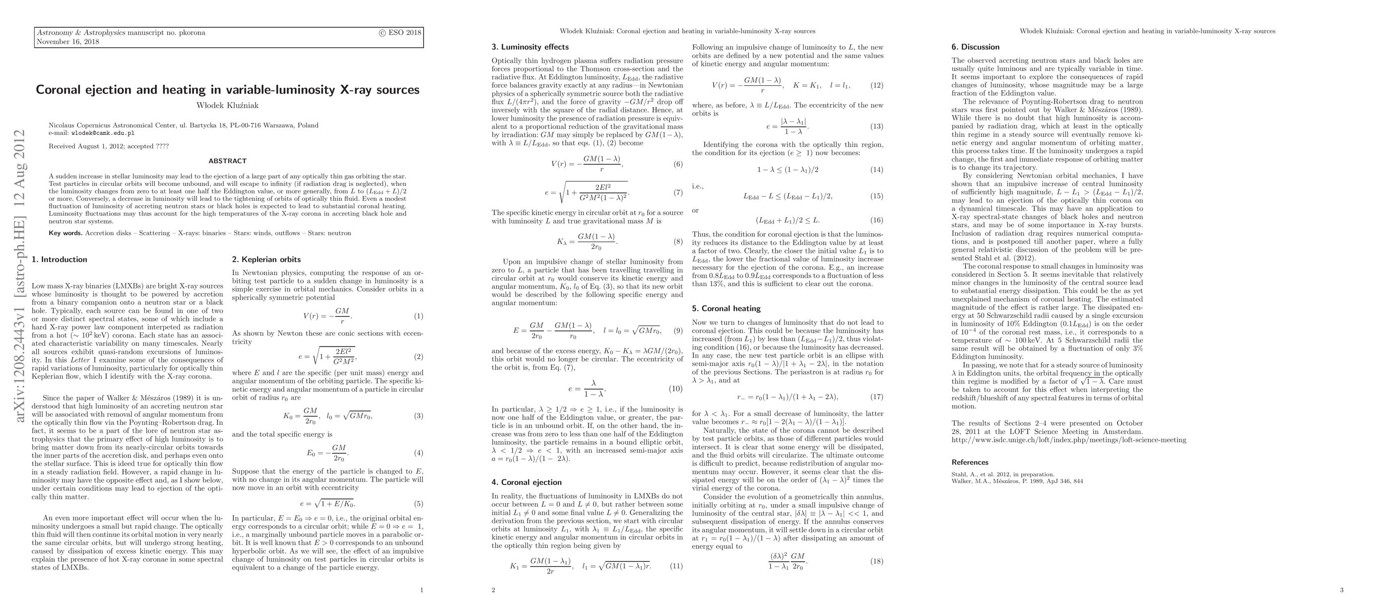 A sudden increase in stellar luminosity may lead to the ejection of a large part of any optically thin gas orbiting the star. Test particles in circular orbits will become unbound, and will escape to infinity (if radiation drag is neglected), when the luminosity changes from zero to at least one half the Eddington value, or more generally, from L to (L_Edd+L)/2 or more. Conversely, a decrease in luminosity will lead to the tightening of orbits of optically thin fluid. Even a modest fluctuation of luminosity of accreting neutron stars or black holes is expected to lead to substantial coronal heating. Luminosity fluctuations may thus account for the high temperatures of the X-ray corona in accreting black hole and neutron star systems.