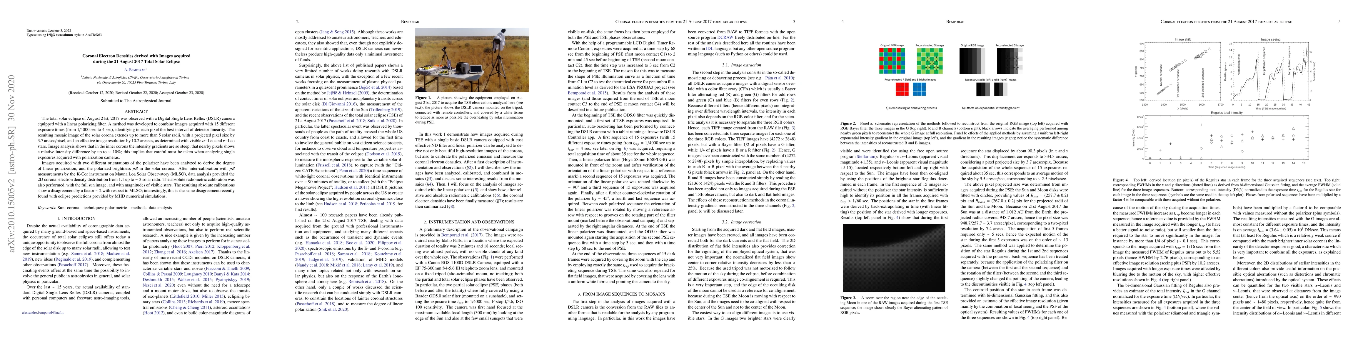 Researchers used a DSLR camera to capture images of the solar corona during the 2017 total solar eclipse, creating a high-resolution mosaic image and deriving electron density distribution from 1.1 to 3 solar radii.