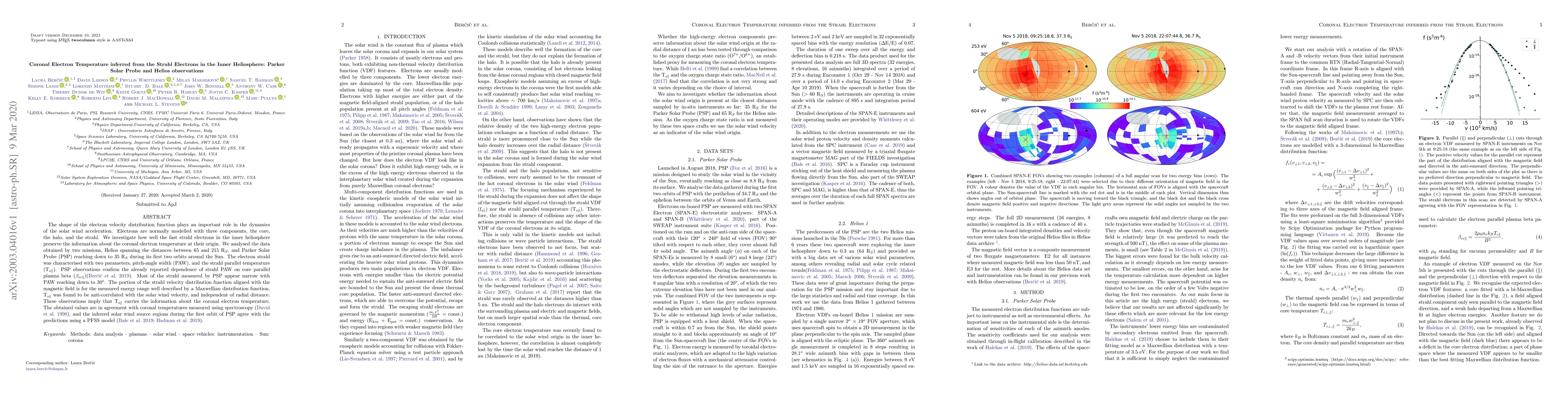 This paper investigates how strahl electrons in the inner heliosphere reflect the coronal electron temperature, using data from Helios and Parker Solar Probe. Observations show that strahl parallel temperature is anti-correlated with solar wind velocity and carries information about the coronal electron temperature, aligning with spectroscopic measurements.