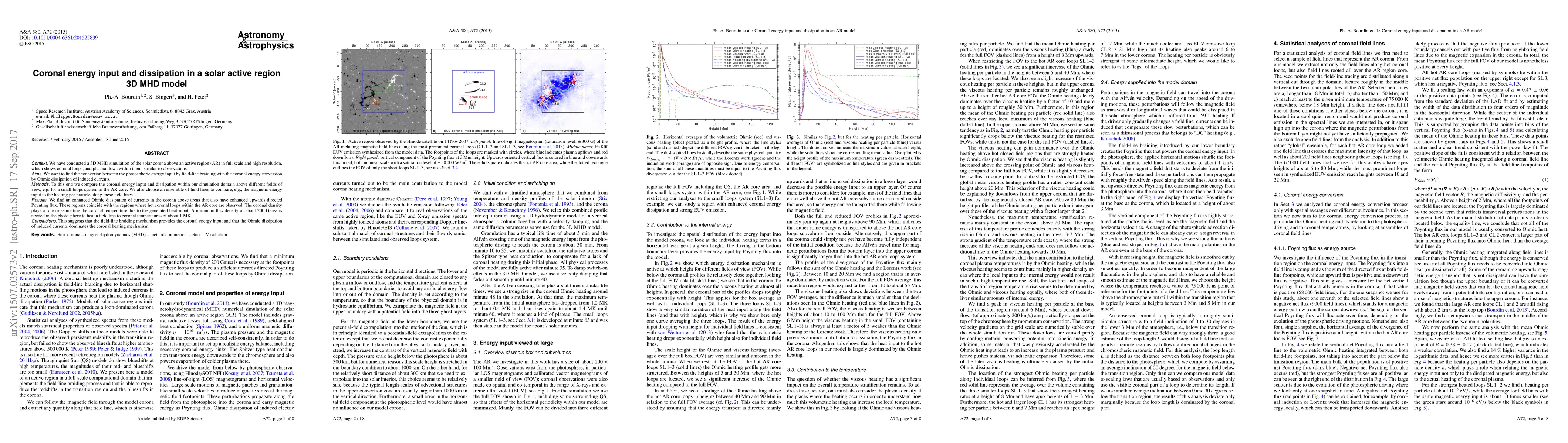 This 3D MHD simulation of a solar active region reveals the connection between photospheric energy input and coronal energy dissipation, showing enhanced Ohmic dissipation in areas with high upward Poynting flux, suggesting that field-line braiding and Ohmic heating are key mechanisms for coronal heating.
