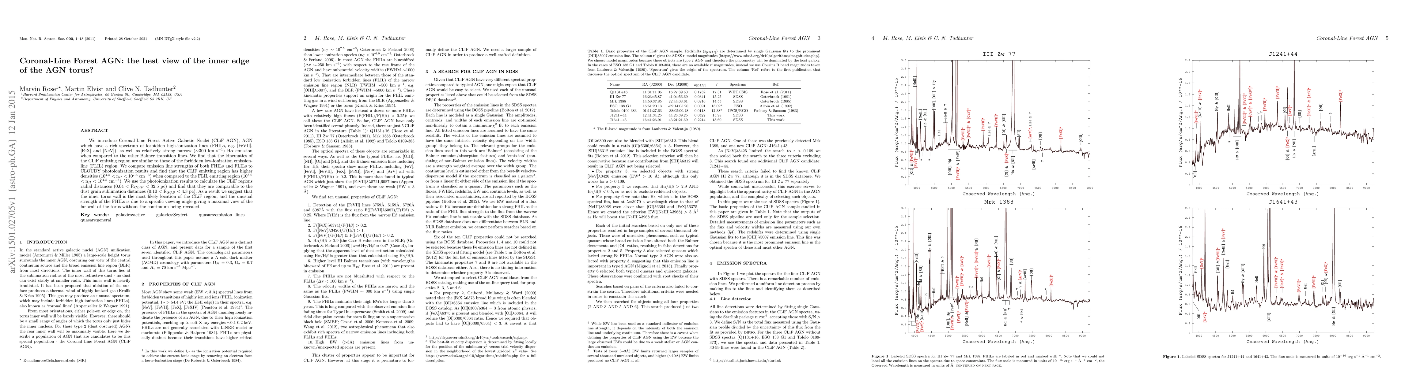 We introduce Coronal-Line Forest Active Galactic Nuclei (CLiF AGN), AGN which have a rich spectrum of forbidden high-ionization lines (FHILs, e.g. [FeVII], [FeX] and [NeV]), as well as relatively strong narrow ($\sim$300 km s$^{-1}$) H$\alpha$ emission when compared to the other Balmer transition lines. We find that the kinematics of the CLiF emitting region are similar to those of the forbidden low-ionization emission-line (FLIL) region. We compare emission line strengths of both FHILs and FLILs to CLOUDY photoionization results and find that the CLiF emitting region has higher densities (10$^{4.5}$ $<$ n$_H$ $<$ 10$^{7.5}$ cm$^{-3}$) when compared to the FLIL emitting region (10$^{3.0}$ $<$ n$_H$ $<$ 10$^{4.5}$ cm$^{-3}$). We use the photoionization results to calculate the CLiF regions radial distances (0.04 $<$ R$_{CLiF}$ $<$ 32.5 pc) and find that they are comparable to the dust grain sublimation distances (0.10 $<$ R$_{SUB}$ $<$ 4.3 pc). As a result we suggest that the inner torus wall is the most likely location of the CLiF region, and the unusual strength of the FHILs is due to a specific viewing angle giving a maximal view of the far wall of the torus without the continuum being revealed.