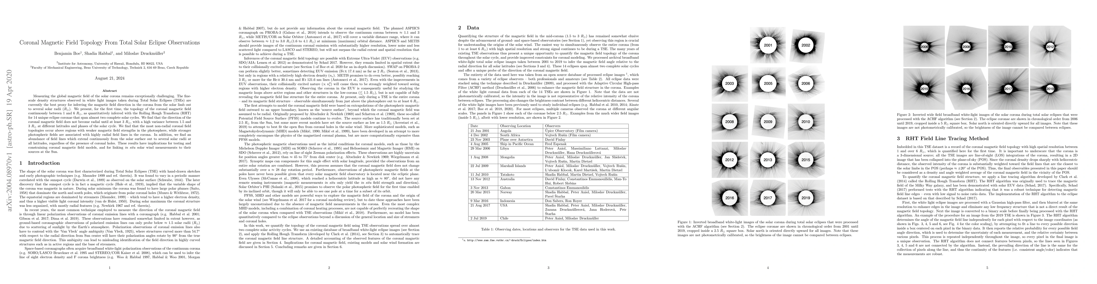 This paper presents a detailed analysis of the coronal magnetic field topology from observations during Total Solar Eclipses, revealing that the magnetic field direction remains non-radial until at least 3 solar radii, with significant variance between 1.5 and 3 solar radii. The study highlights the correlation between weaker photospheric magnetic fields and more complex coronal field lines, and suggests continuous field lines extending from the solar surface to several solar radii.