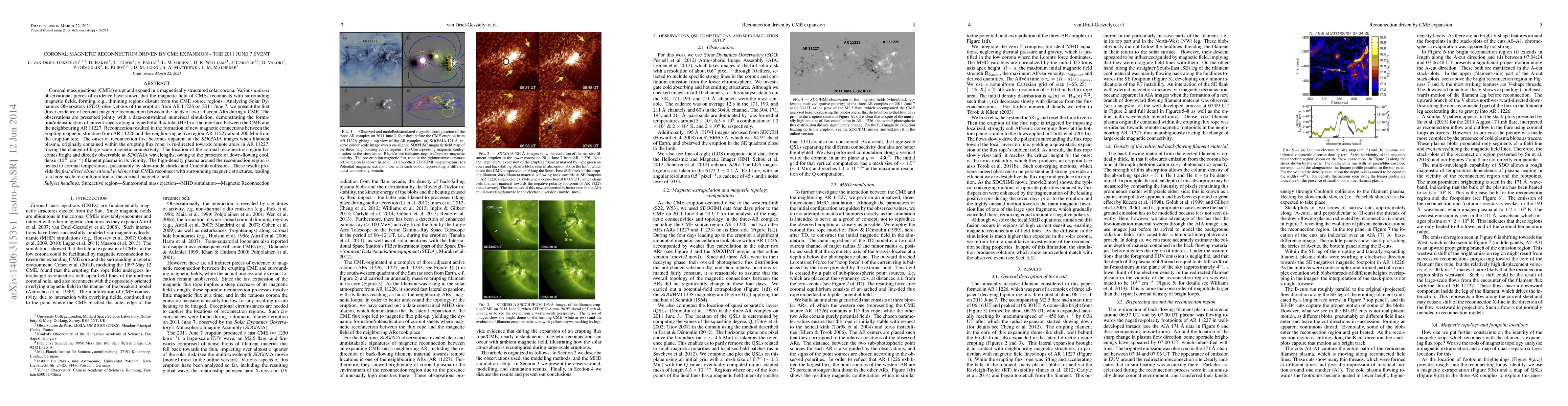 This paper presents the first direct evidence of coronal magnetic reconnection during a CME event on 2011 June 7, using observations from the Solar Dynamics Observatory (SDO). The reconnection formed new magnetic connections between the CME from AR 11226 and the neighboring AR 11227, leading to a large-scale reconfiguration of the coronal magnetic field.