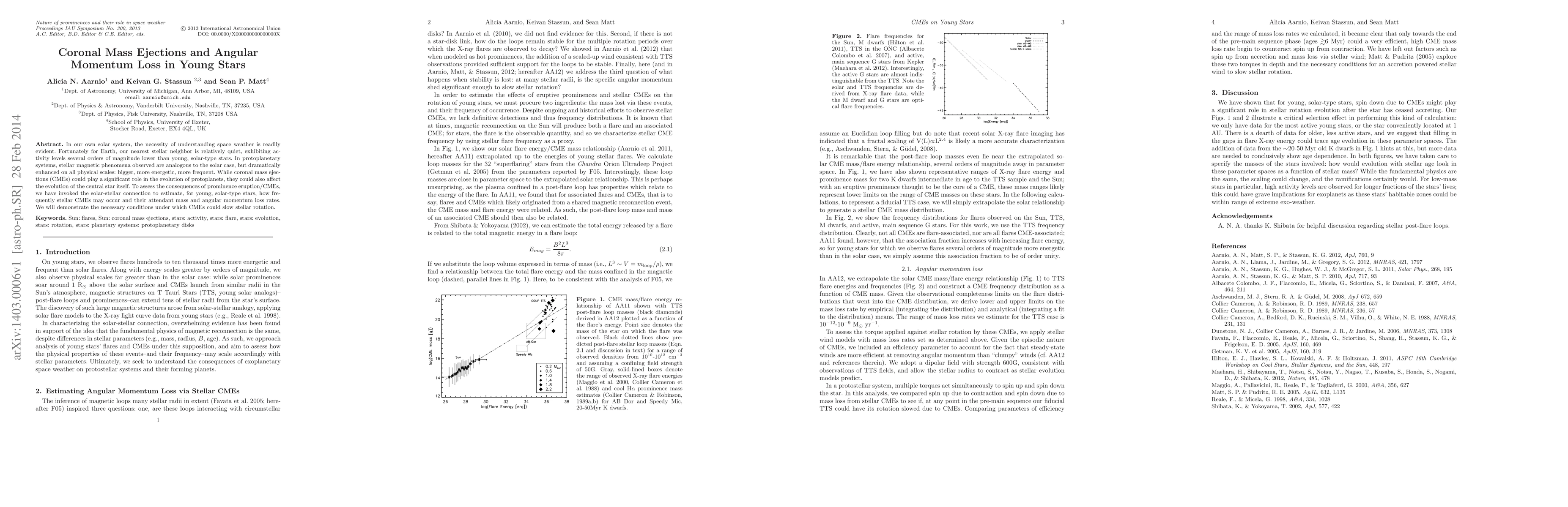 In our own solar system, the necessity of understanding space weather is readily evident. Fortunately for Earth, our nearest stellar neighbor is relatively quiet, exhibiting activity levels several orders of magnitude lower than young, solar-type stars. In protoplanetary systems, stellar magnetic phenomena observed are analogous to the solar case, but dramatically enhanced on all physical scales: bigger, more energetic, more frequent. While coronal mass ejections (CMEs) could play a significant role in the evolution of protoplanets, they could also affect the evolution of the central star itself. To assess the consequences of prominence eruption/CMEs, we have invoked the solar-stellar connection to estimate, for young, solar-type stars, how frequently stellar CMEs may occur and their attendant mass and angular momentum loss rates. We will demonstrate the necessary conditions under which CMEs could slow stellar rotation.