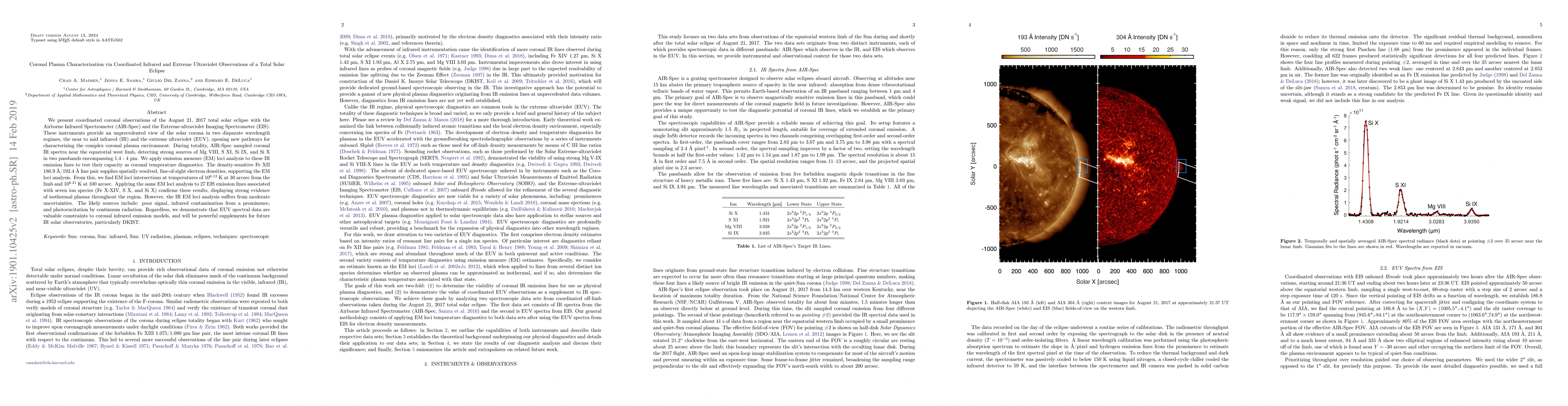 This paper presents coordinated infrared and extreme ultraviolet observations of the 2017 total solar eclipse to characterize the solar corona. The study uses AIR-Spec and EIS to analyze emission lines, revealing isothermal plasma and electron densities, while noting uncertainties in infrared diagnostics due to signal issues and contamination.