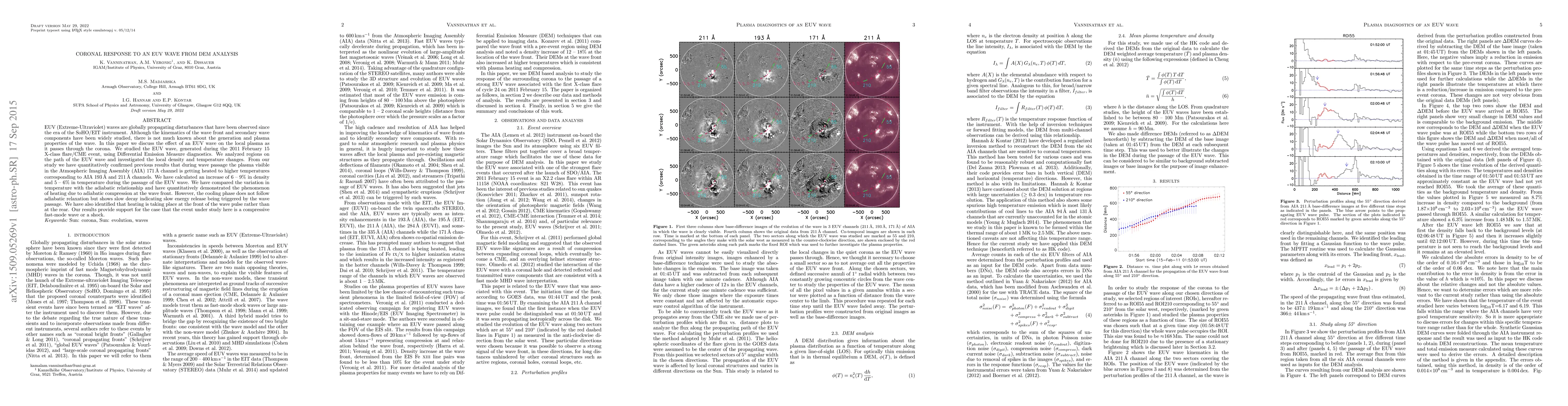 This paper investigates the coronal response to an EUV wave generated during a 2011 X-class flare/CME event using Differential Emission Measure diagnostics. The study confirms heating of plasma to higher temperatures and a 6-9% density increase, supporting the wave's compressive nature and indicating a slow energy release phase following adiabatic compression.