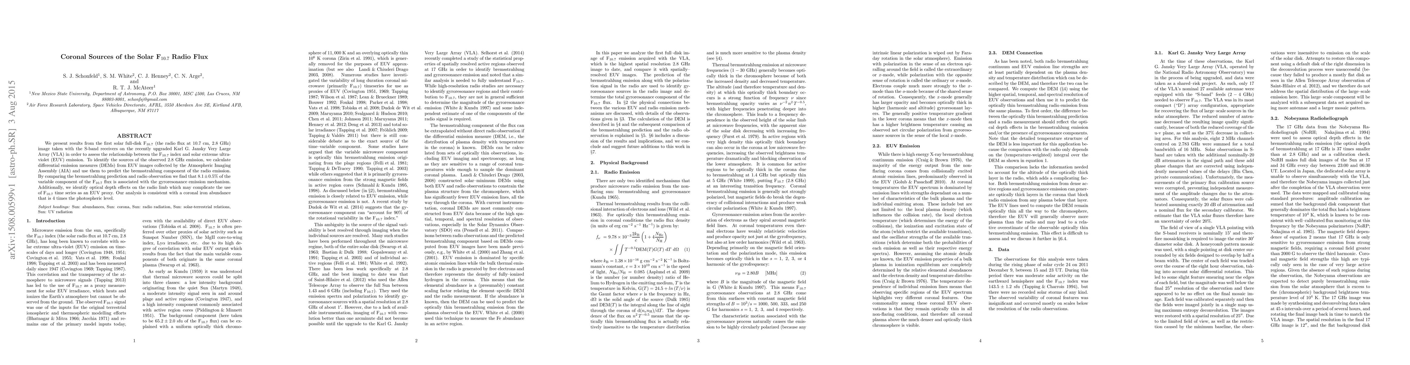 The paper presents the first solar full-disk F$_{10.7}$ image from the upgraded VLA, linking solar EUV emission to the 2.8 GHz radio flux. Using AIA EUV images, they calculate DEMs to predict bremsstrahlung emission, finding 8.1±0.5% of F$_{10.7}$'s variability is from gyroresonance emission. Optical depth effects on the radio limb are identified, cautioning against using F$_{10.7}$ as an EUV proxy. The analysis supports a coronal iron abundance four times photospheric levels.