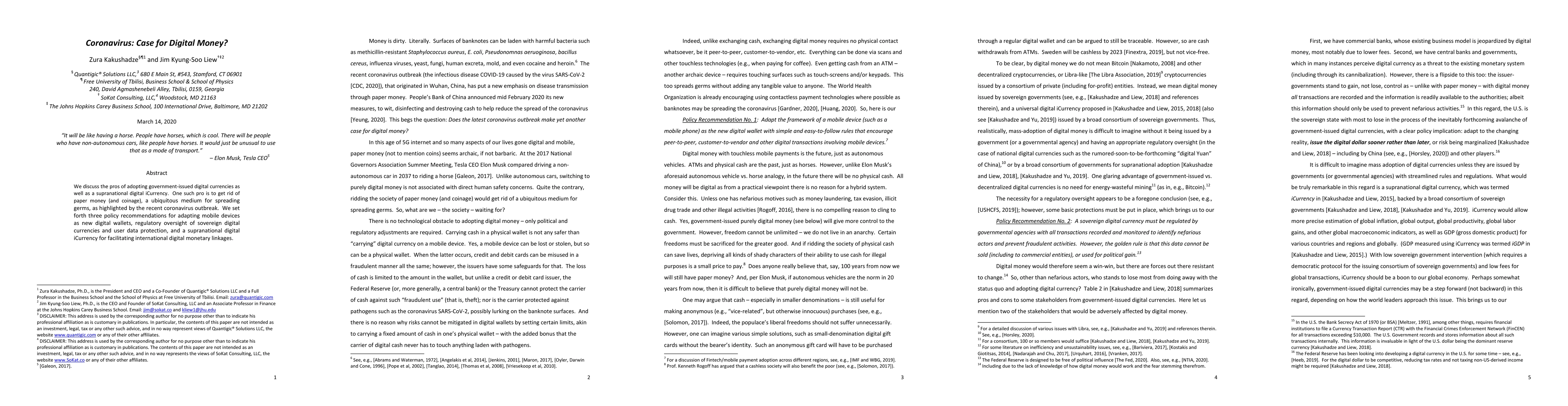 We discuss the pros of adopting government-issued digital currencies as well as a supranational digital iCurrency. One such pro is to get rid of paper money (and coinage), a ubiquitous medium for spreading germs, as highlighted by the recent coronavirus outbreak. We set forth three policy recommendations for adapting mobile devices as new digital wallets, regulatory oversight of sovereign digital currencies and user data protection, and a supranational digital iCurrency for facilitating international digital monetary linkages.