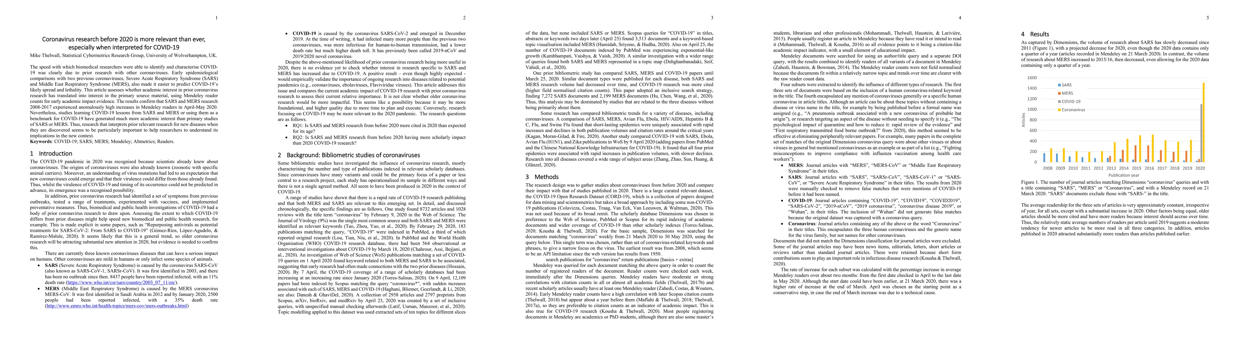 The speed with which biomedical researchers were able to identify and characterise COVID-19 was clearly due to prior research with other coronaviruses. Early epidemiological comparisons with two previous coronaviruses, Severe Acute Respiratory Syndrome (SARS) and Middle East Respiratory Syndrome (MERS), also made it easier to predict COVID-19's likely spread and lethality. This article assesses whether academic interest in prior coronavirus research has translated into interest in the primary source material, using Mendeley reader counts for early academic impact evidence. The results confirm that SARS and MERS research 2008-2017 experienced anomalously high increases in Mendeley readers in April-May 2020. Nevertheless, studies learning COVID-19 lessons from SARS and MERS or using them as a benchmark for COVID-19 have generated much more academic interest than primary studies of SARS or MERS. Thus, research that interprets prior relevant research for new diseases when they are discovered seems to be particularly important to help researchers to understand its implications in the new context.
