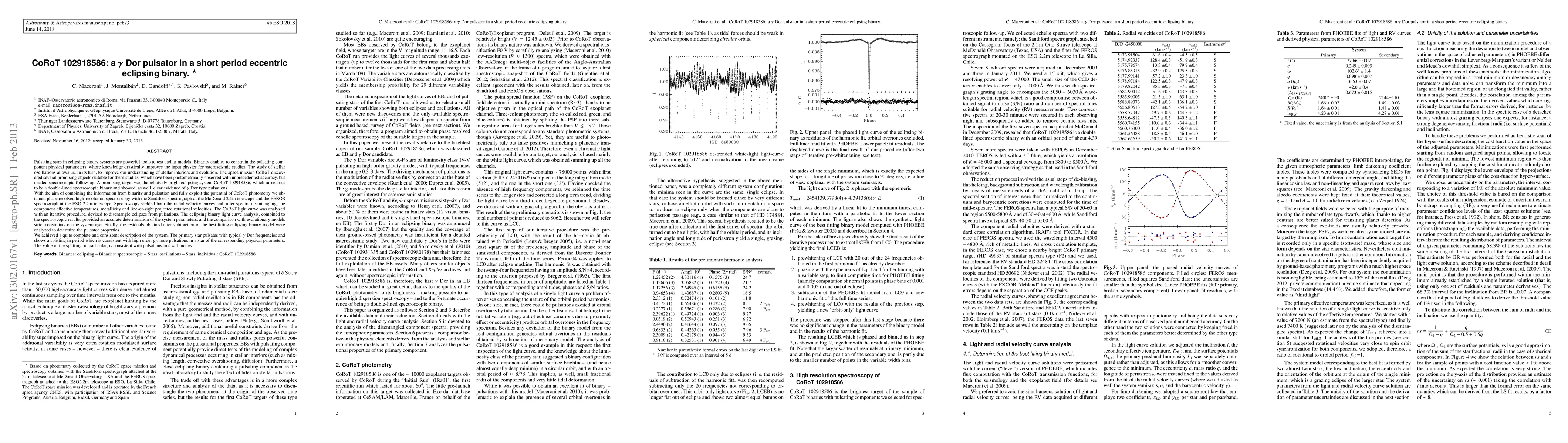 This paper investigates the eclipsing binary system CoRoT 102918586, which contains a Gamma Dor pulsator, using high-resolution spectroscopy and CoRoT light curves. The study provides detailed parameters of the system, including the pulsator's properties, and confirms the star's high-order g-mode pulsations, enhancing our understanding of stellar interiors and evolution.