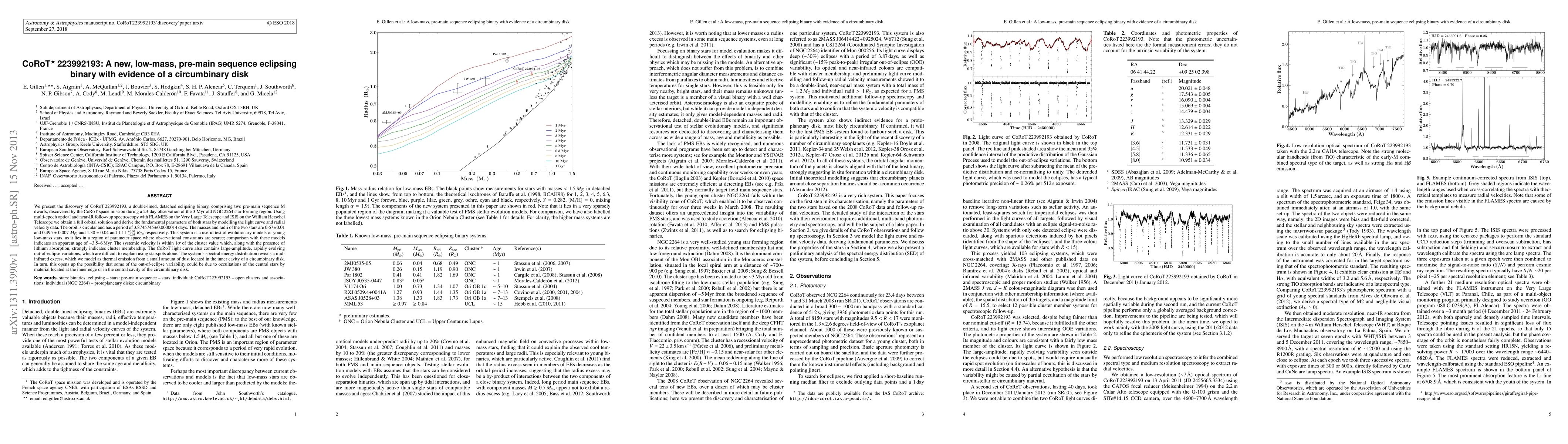 We present the discovery of CoRoT 223992193, a double-lined, detached eclipsing binary, comprising two pre-main sequence M dwarfs, discovered by the CoRoT space mission during a 23-day observation of the 3 Myr old NGC 2264 star-forming region. Using multi-epoch optical and near-IR follow-up spectroscopy with FLAMES on the Very Large Telescope and ISIS on the William Herschel Telescope we obtain a full orbital solution and derive the fundamental parameters of both stars by modelling the light curve and radial velocity data. The orbit is circular and has a period of $3.8745745 \pm 0.0000014$ days. The masses and radii of the two stars are $0.67 \pm 0.01$ and $0.495 \pm 0.007$ $M_{\odot}$ and $1.30 \pm 0.04$ and $1.11 ~^{+0.04}_{-0.05}$ $R_{\odot}$, respectively. This system is a useful test of evolutionary models of young low-mass stars, as it lies in a region of parameter space where observational constraints are scarce; comparison with these models indicates an apparent age of $\sim$3.5-6 Myr. The systemic velocity is within $1\sigma$ of the cluster value which, along with the presence of lithium absorption, strongly indicates cluster membership. The CoRoT light curve also contains large-amplitude, rapidly evolving out-of-eclipse variations, which are difficult to explain using starspots alone. The system's spectral energy distribution reveals a mid-infrared excess, which we model as thermal emission from a small amount of dust located in the inner cavity of a circumbinary disk. In turn, this opens up the possibility that some of the out-of-eclipse variability could be due to occultations of the central stars by material located at the inner edge or in the central cavity of the circumbinary disk.