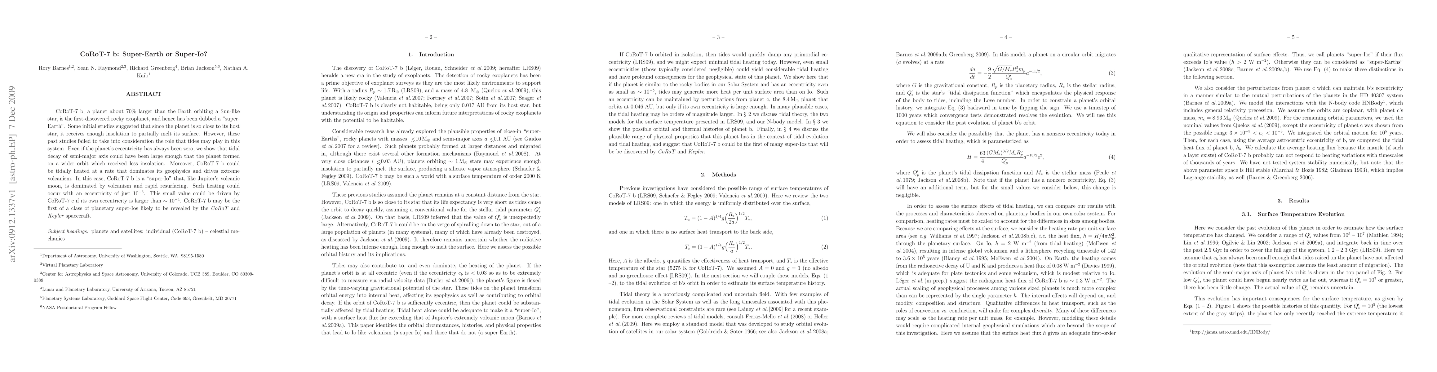 CoRoT-7 b may be a 'super-Io' due to tidal heating from its star, potentially driving extreme volcanism and rapid resurfacing.