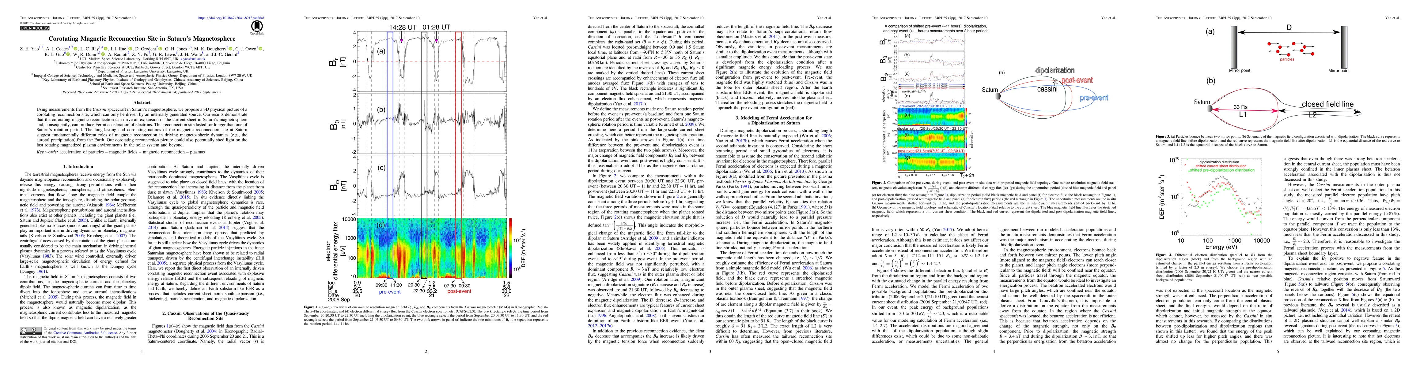 This study reveals a persistent corotating magnetic reconnection site in Saturn's magnetosphere, driven by internal sources, which expands the current sheet and accelerates electrons. Unlike Earth, this reconnection plays a unique role in Saturn's magnetospheric dynamics.