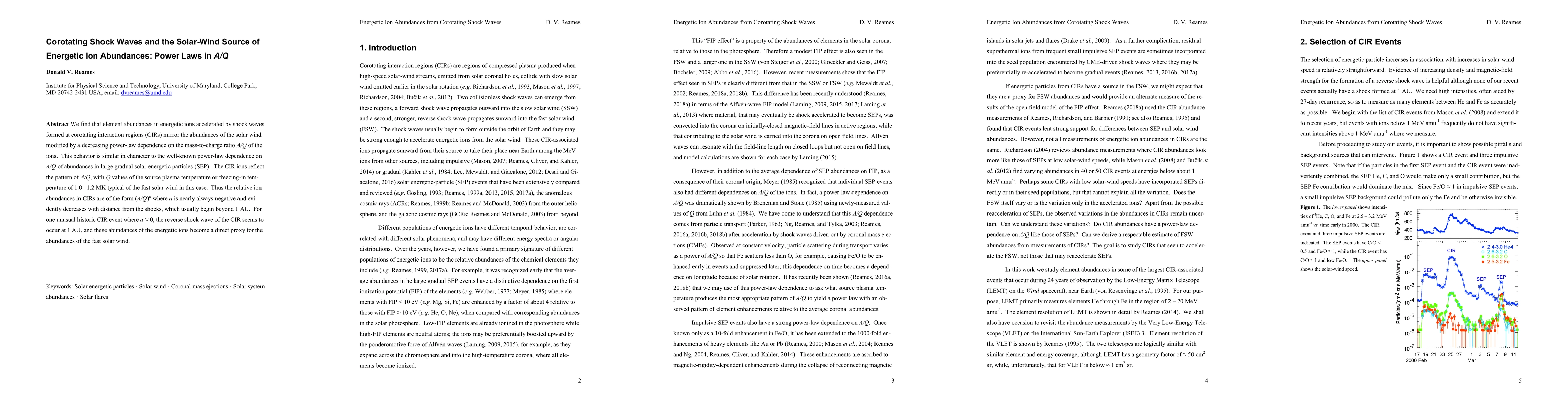 This paper reveals that energetic ions accelerated by corotating interaction region shock waves exhibit abundances mirroring solar wind patterns, following a power-law dependence on the mass-to-charge ratio A/Q. These ions reflect the fast solar wind's temperature, suggesting a direct correlation between CIR shock-accelerated ions and solar wind abundances.