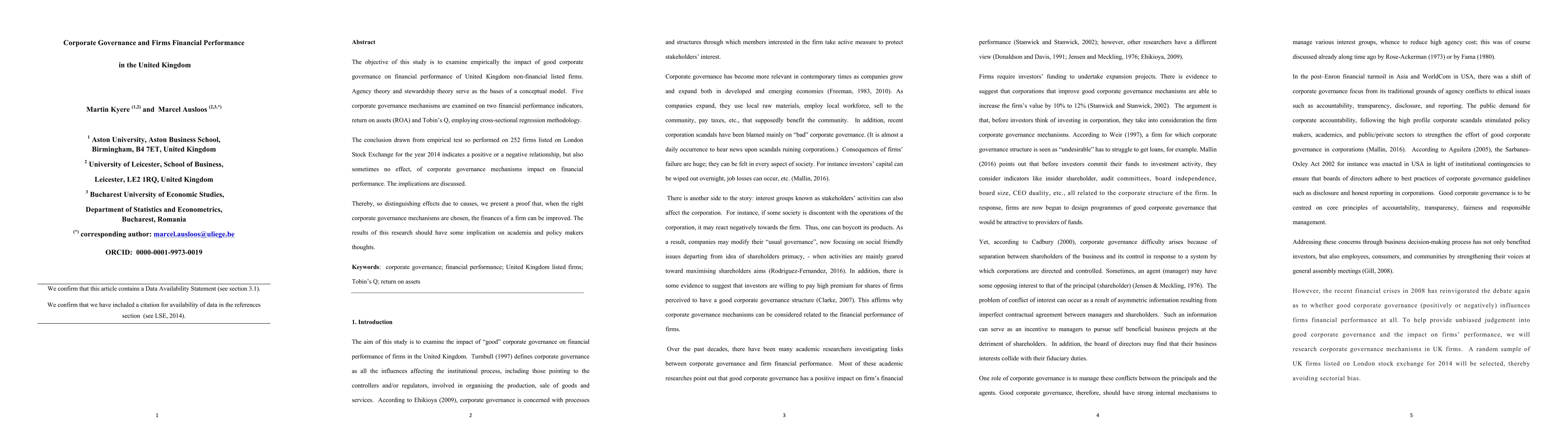 This study investigates the relationship between corporate governance mechanisms and financial performance in UK non-financial firms, finding mixed results on indicators like ROA and Tobin's Q. The research suggests that appropriate governance mechanisms can positively influence firm finances, offering insights for both academia and policymakers.