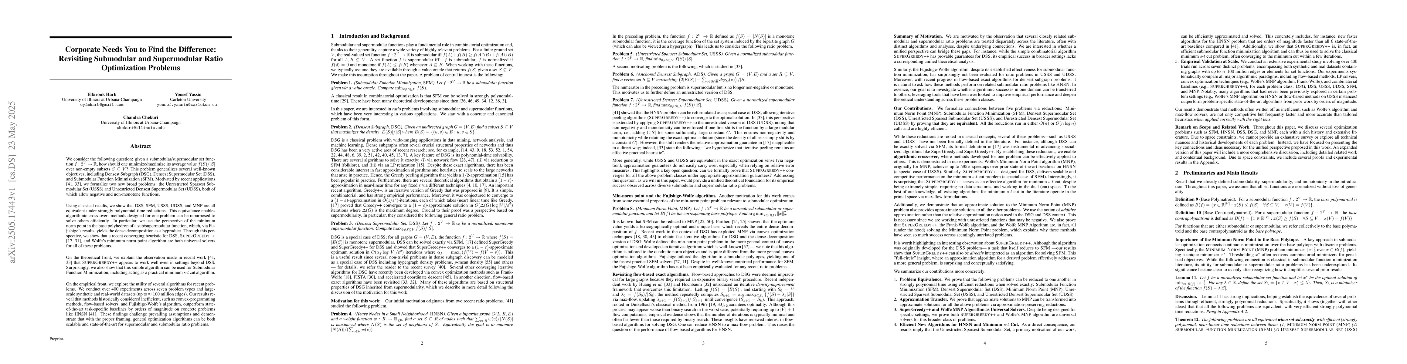The paper establishes equivalence between several submodular and supermodular ratio optimization problems and demonstrates the universality of Fujishige-Wolfe's algorithm and SuperGreedy++ as solvers.