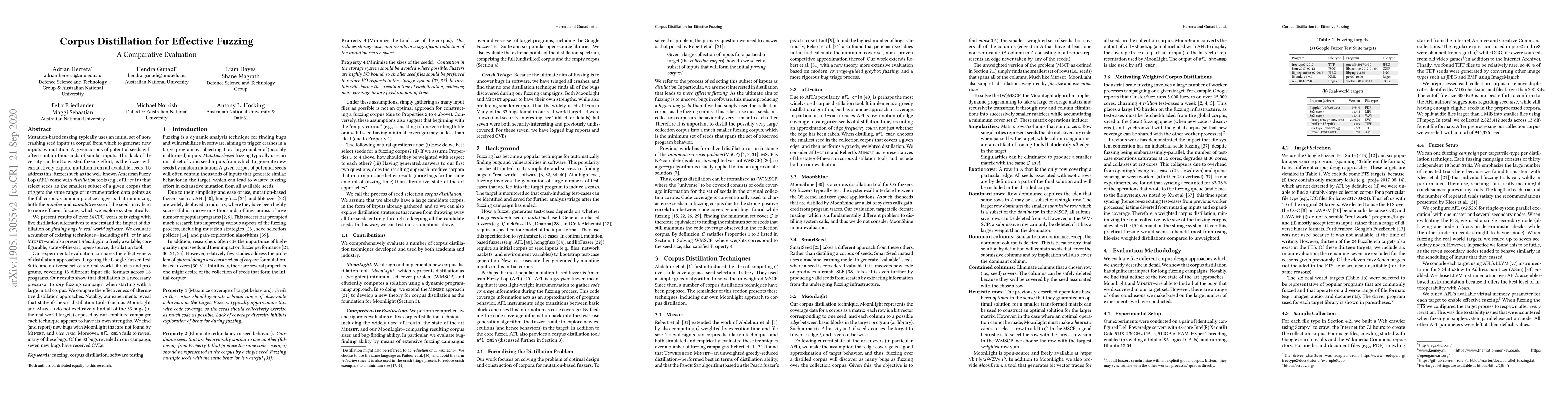 This paper evaluates the effectiveness of corpus distillation methods in fuzzing, finding that state-of-the-art tools like MoonLight and Minset have strengths and weaknesses, and can reveal new bugs not found by other approaches.