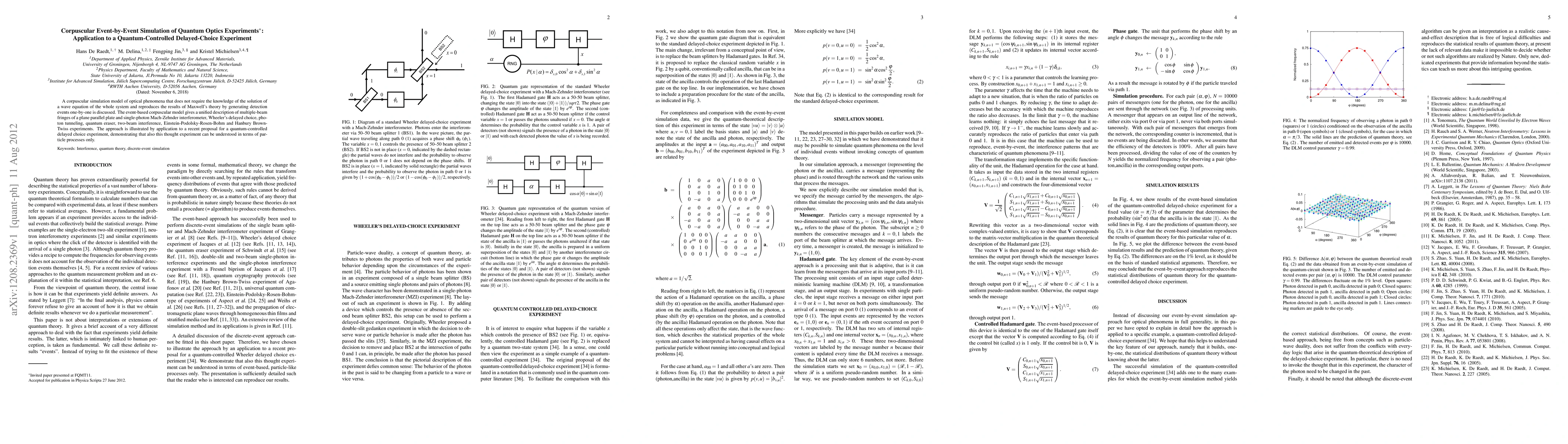 A corpuscular simulation model of optical phenomena that does not require the knowledge of the solution of a wave equation of the whole system and reproduces the results of Maxwell's theory by generating detection events one-by-one is discussed. The event-based corpuscular model gives a unified description of multiple-beam fringes of a plane parallel plate and single-photon Mach-Zehnder interferometer, Wheeler's delayed choice, photon tunneling, quantum eraser, two-beam interference, Einstein-Podolsky-Rosen-Bohm and Hanbury Brown-Twiss experiments. The approach is illustrated by application to a recent proposal for a quantum-controlled delayed choice experiment, demonstrating that also this thought experiment can be understood in terms of particle processes only.