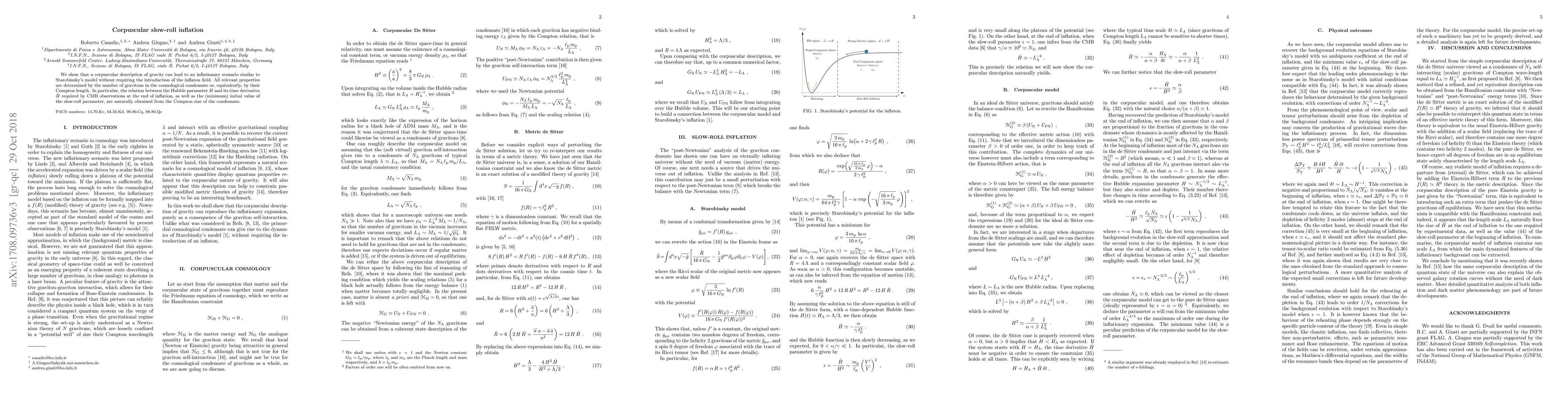 We show that a corpuscular description of gravity can lead to an inflationary scenario similar to Starobinsky's model without requiring the introduction of the inflaton field. All relevant properties are determined by the number of gravitons in the cosmological condensate or, equivalently, by their Compton length. In particular, the relation between the Hubble parameter $H$ and its time derivative $\dot H$ required by CMB observations at the end of inflation, as well as the (minimum) initial value of the slow-roll parameter, are naturally obtained from the Compton size of the condensate.