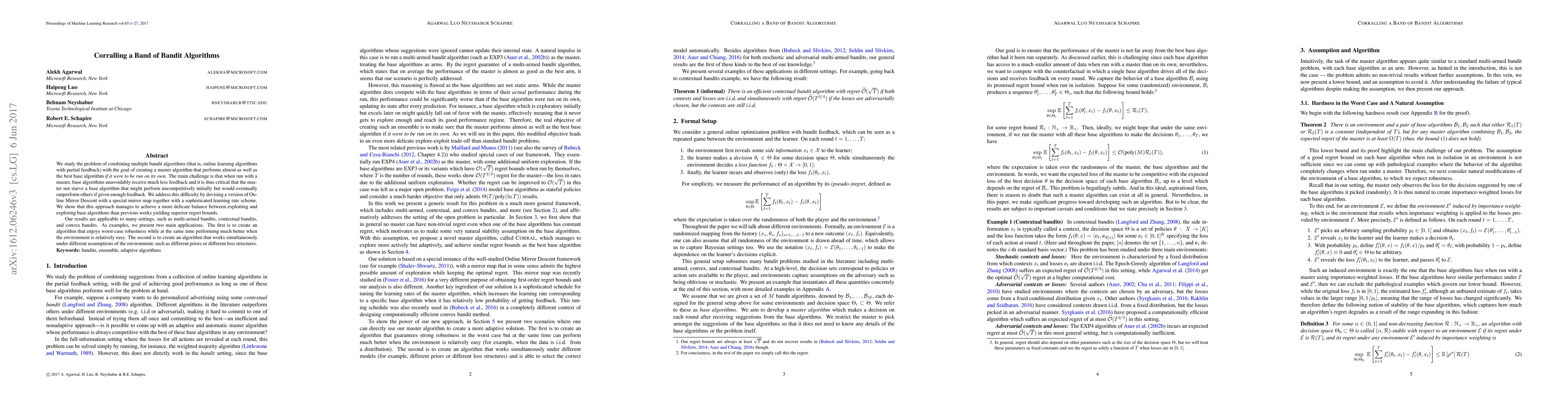 Researchers developed a new algorithm to combine multiple bandit algorithms, enabling them to work together effectively while still receiving enough feedback. This approach outperforms previous methods in terms of regret bounds and has applications in various settings, including multi-armed bandits and convex bandits.