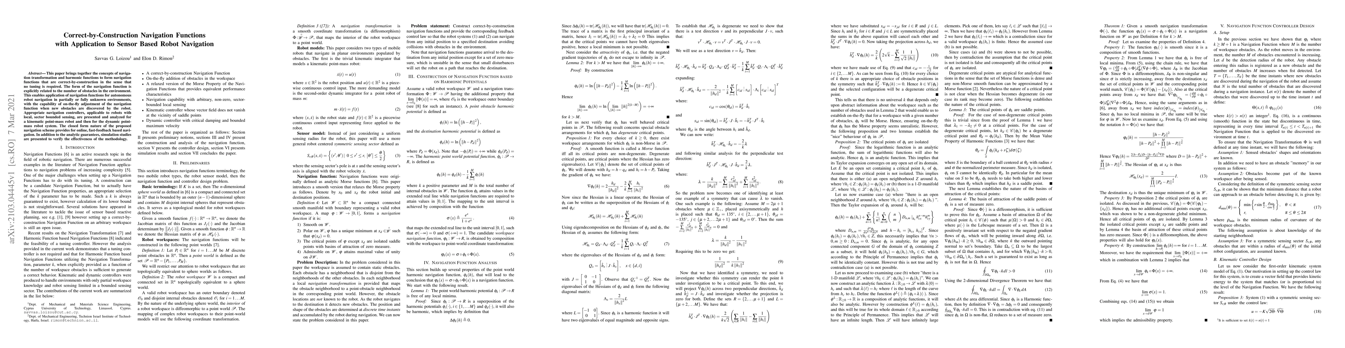 This paper proposes a correct-by-construction navigation function based on harmonic functions and navigation transformations, enabling autonomous robot navigation without tuning. The method adapts dynamically to new obstacles and is verified through simulation studies.