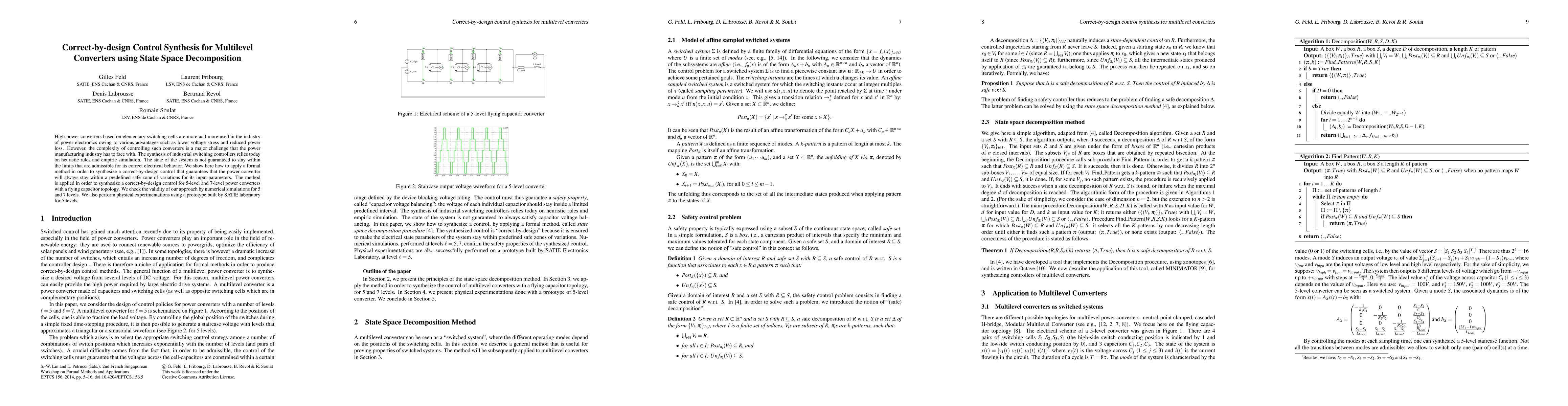 High-power converters based on elementary switching cells are more and more used in the industry of power electronics owing to various advantages such as lower voltage stress and reduced power loss. However, the complexity of controlling such converters is a major challenge that the power manufacturing industry has to face with. The synthesis of industrial switching controllers relies today on heuristic rules and empiric simulation. The state of the system is not guaranteed to stay within the limits that are admissible for its correct electrical behavior. We show here how to apply a formal method in order to synthesize a correct-by-design control that guarantees that the power converter will always stay within a predefined safe zone of variations for its input parameters. The method is applied in order to synthesize a correct-by-design control for 5-level and 7-level power converters with a flying capacitor topology. We check the validity of our approach by numerical simulations for 5 and 7 levels. We also perform physical experimentations using a prototype built by SATIE laboratory for 5 levels.