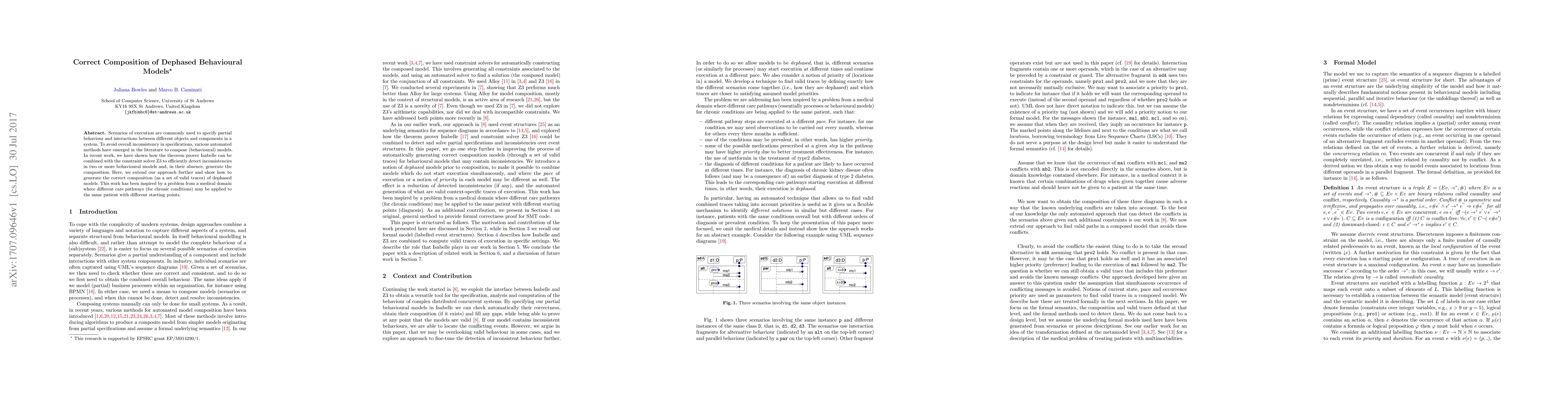 This paper extends an automated method combining Isabelle and Z3 to detect inconsistencies and compose behavioural models, focusing now on generating correct compositions of dephased models, inspired by medical care pathways for chronic conditions. The approach ensures the consistency and validity of composed models as sets of valid execution traces.