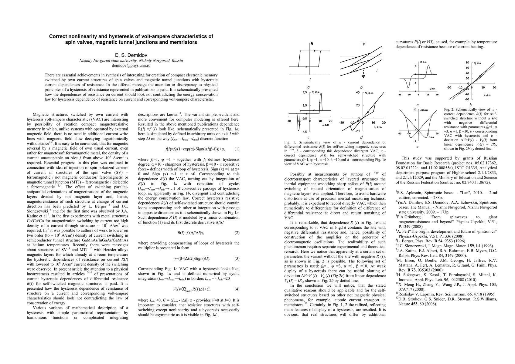 There are essential achievements in synthesis of interesting for creation of compact electronic memory switched by own current structures of spin valves and magnetic tunnel junctions with hysteretic current dependences of resistance. In the offered message the attention to discrepancy to physical principles of a hysteresis of resistance represented in publications is paid. It is schematically presented how the dependences of resistance on current should look not contradicting the energy conservation law for hysteresis dependence of resistance on current and corresponding volt-ampere characteristic.
