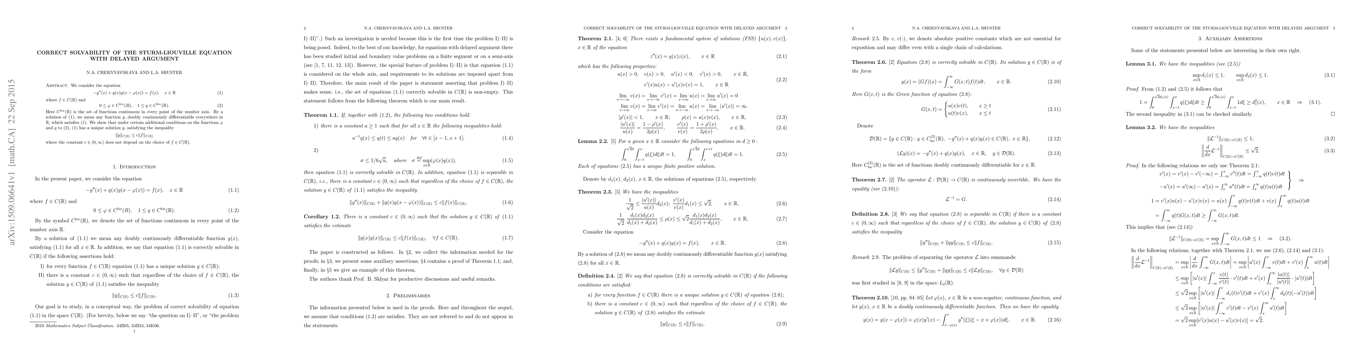We obtain sufficient conditions for correct solvability of Sturm-Liouville Equation with Delayed Argument on the whole axis.
