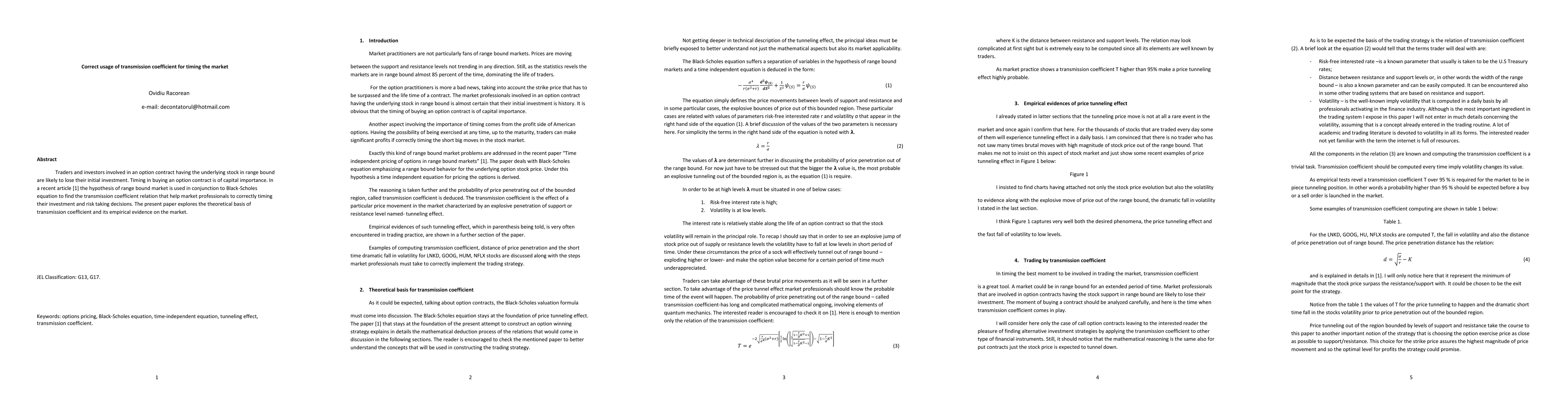 This paper investigates the transmission coefficient's theoretical basis and its market application, aiming to assist traders in accurately timing their investment and risk decisions in range-bound stock markets, building upon previous work combining range-bound market hypothesis with the Black-Scholes equation.