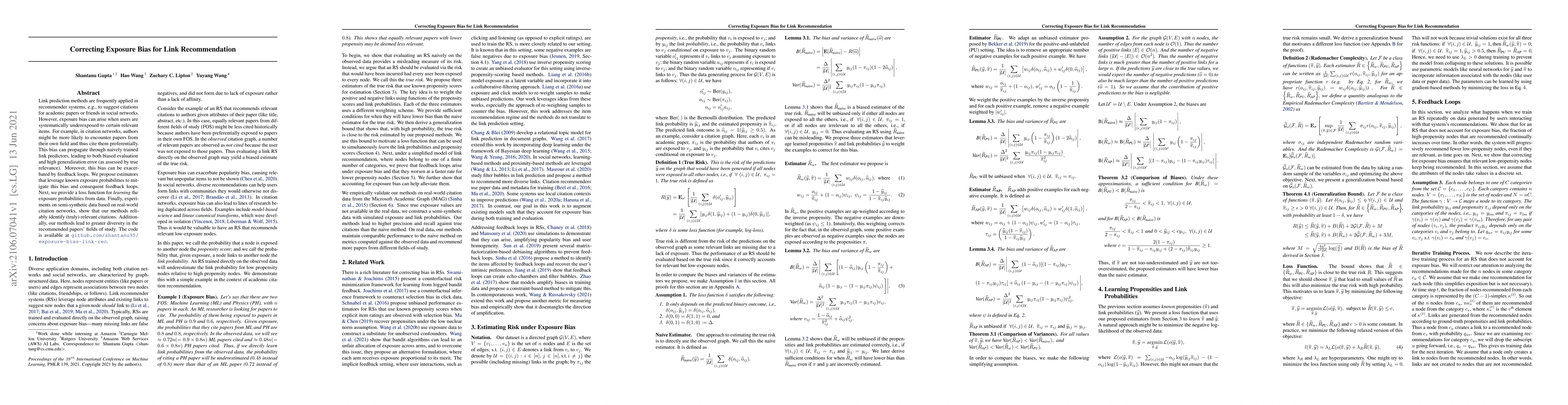 This study proposes methods to correct exposure bias in link recommendation systems, which can lead to biased evaluation and poor generalization, especially in citation networks and social networks.
