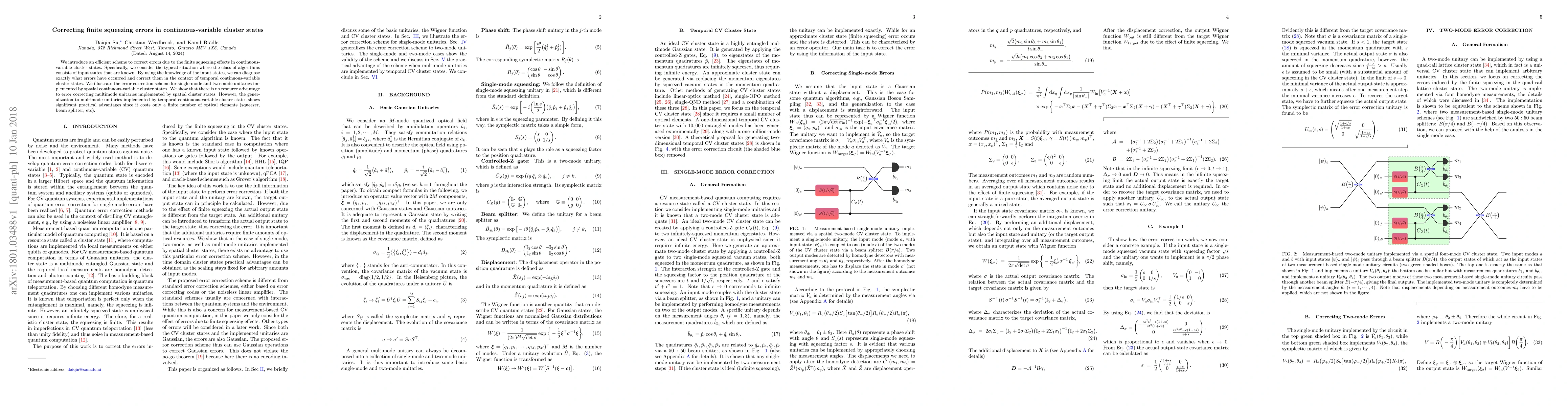 This paper proposes an efficient error correction scheme for finite squeezing errors in continuous-variable cluster states, leveraging the knowledge of input states to diagnose and correct errors. It demonstrates practical advantages in correcting multimode unitaries using temporal continuous-variable cluster states, requiring only a finite number of optical elements.