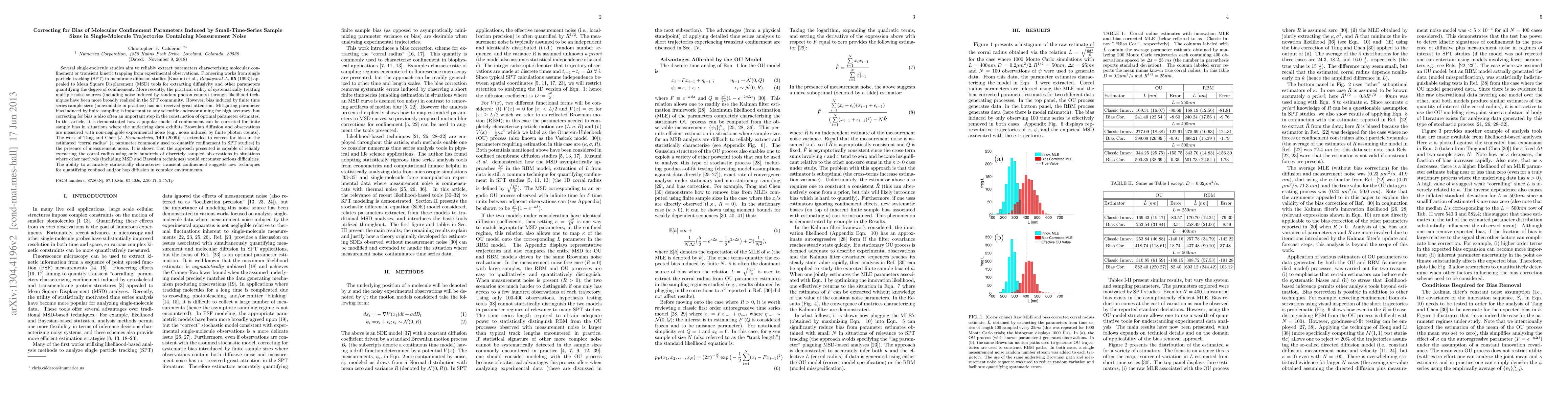Several single-molecule studies aim to reliably extract parameters characterizing molecular confinement or transient kinetic trapping from experimental observations. Pioneering works from single particle tracking in membrane diffusion studies [Kusumi et al., Biophysical J., 1993] appealed to Mean Square Displacement tools for extracting diffusivity and other parameters quantifying the degree of confinement. More recently, the practical utility of systematically treating multiple noise sources (including noise induced by random photon counts) through likelihood techniques have been more broadly realized in the SPT community. However, bias induced by finite time series sample sizes has not received great attention. Mitigating parameter bias induced by finite sampling is important to any scientific endeavor aiming for high accuracy, but correcting for bias is also often an important step in the construction of optimal parameter estimates. In this article, it is demonstrated how a popular model of confinement can be corrected for finite sample bias in situations where the underlying data exhibits Brownian diffusion and observations are measured with non-negligible experimental noise (e.g., noise induced by finite photon counts). The work of Tang and Chen [J. Econometrics, 2009] is extended to correct for bias in the estimated corral radius (a parameter commonly used to quantify confinement in SPT studies) in the presence of measurement noise. It is shown that the approach presented is capable of reliably extracting the corral radius using only hundreds of discretely sampled observations in situations where other methods (including MSD and Bayesian techniques) would encounter serious difficulties. The ability to accurately statistically characterize transient confinement suggests new techniques for quantifying confined and/or hop diffusion in complex environments.