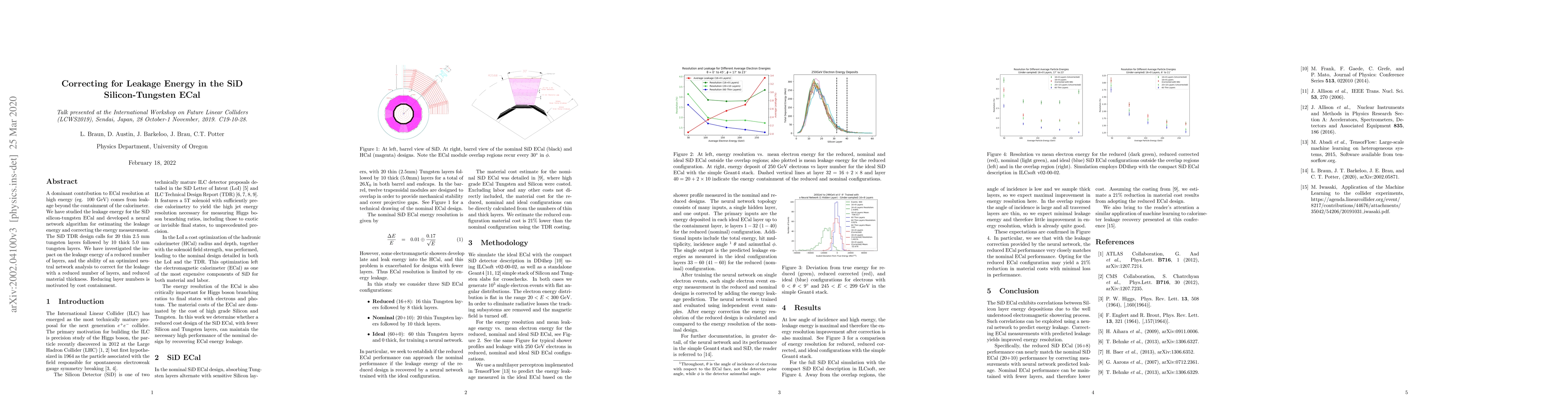 A dominant contribution to ECal resolution at high energy (eg. 100 GeV) comes from leakage beyond the containment of the calorimeter. We have studied the leakage energy for the SiD silicon-tungsten ECal and developed a neural network algorithm for estimating the leakage energy and correcting the energy measurement. The SiD TDR design calls for 20 thin 2.5 mm tungsten layers followed by 10 thick 5.0 mm tungsten layers. We have investigated the impact on the leakage energy of a reduced number of layers, and the ability of an optimized neutral network analysis to correct for the leakage with a reduced number of layers, and reduced material thickness. Reducing layer numbers is motivated by cost containment.
