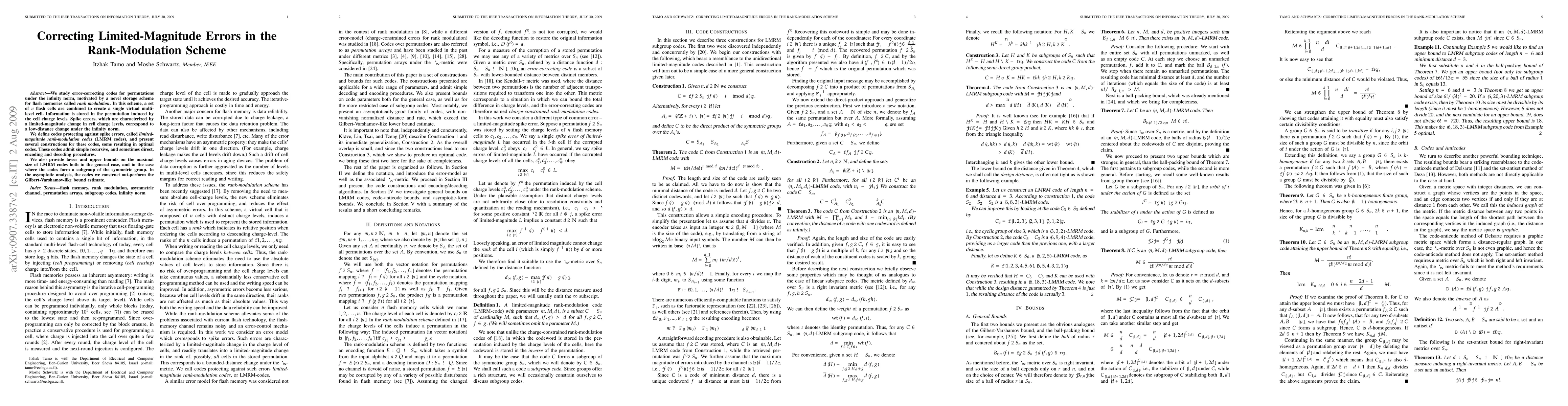 A novel approach combining permutation theory with coding theory was developed to improve the efficiency of limited-magnitude error correction in rank-modulation schemes.