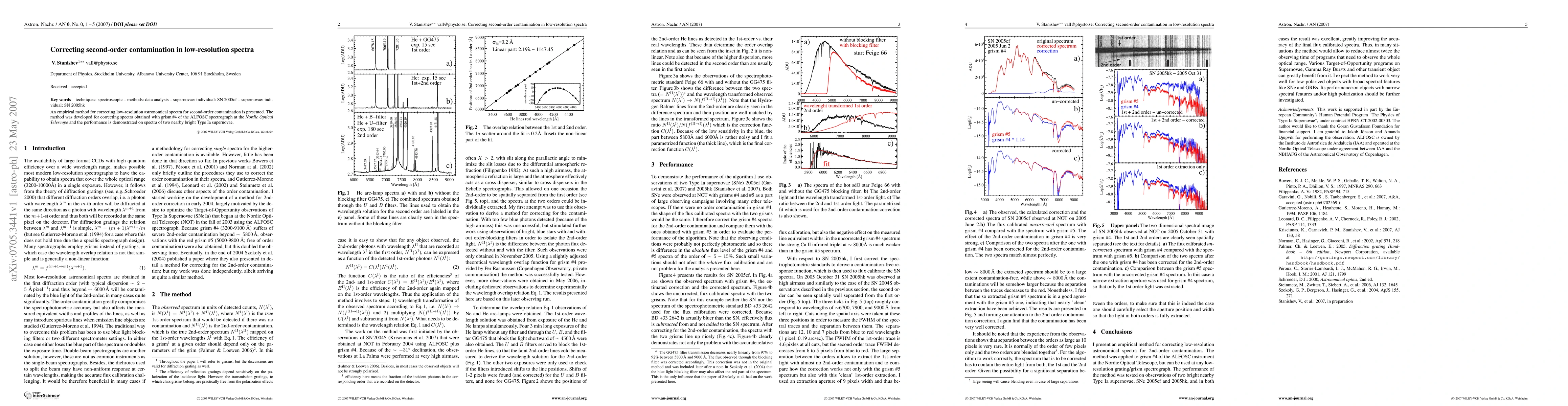 Researchers developed an empirical method to correct low-resolution astronomical spectra for second-order contamination, demonstrating its performance on Type Ia supernovae spectra.