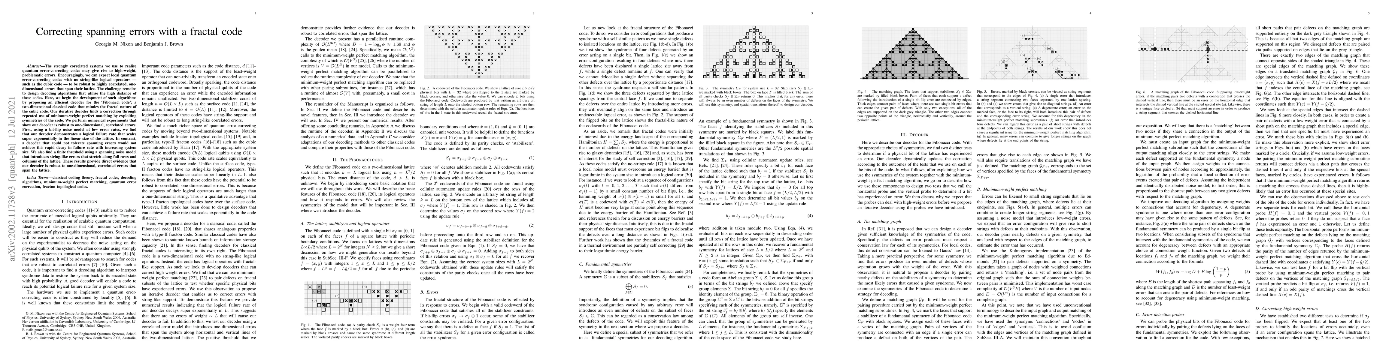 Researchers developed an efficient decoder for a fractal quantum error-correcting code that can correct high-weight errors, demonstrating robustness to one-dimensional correlated errors. The decoder uses minimum-weight perfect matching and symmetries of the code to correct errors.