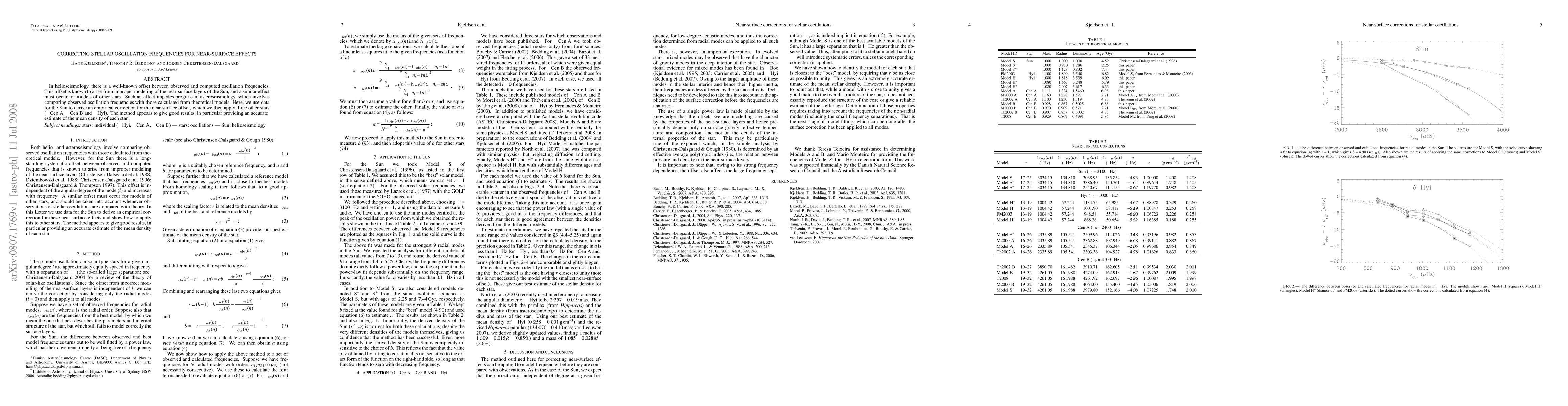This paper develops an empirical correction for the near-surface effects in stellar oscillation frequencies, addressing the offset between observed and computed frequencies in helioseismology. The method is successfully applied to the Sun and three other stars, yielding accurate estimates of their mean densities.