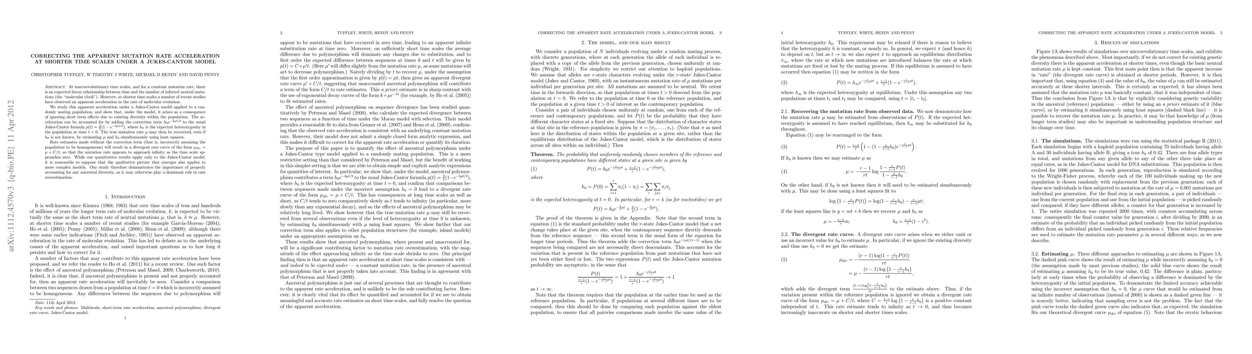At macroevolutionary time scales, and for a constant mutation rate, there is an expected linear relationship between time and the number of inferred neutral mutations (the "molecular clock"). However, at shorter time scales a number of recent studies have observed an apparent acceleration in the rate of molecular evolution. We study this apparent acceleration under a Jukes-Cantor model applied to a randomly mating population, and show that, under the model, it arises as a consequence of ignoring short term effects due to existing diversity within the population. The acceleration can be accounted for by adding the correction term h_0e^{-4mu*t/3} to the usual Jukes-Cantor formula p(t)=(3/4)(1-e^{-4mu*t/3}), where h_0 is the expected heterozygosity in the population at time t=0. The true mutation rate mu may then be recovered, even if h_0 is not known, by estimating mu and h_0 simultaneously using least squares. Rate estimates made without the correction term (that is, incorrectly assuming the population to be homogeneous) will result in a divergent rate curve of the form mu_{div}=mu+C/t, so that the mutation rate appears to approach infinity as the time scale approaches zero. While our quantitative results apply only to the Jukes-Cantor model, it is reasonable to suppose that the qualitative picture that emerges also applies to more complex models. Our study therefore demonstrates the importance of properly accounting for any ancestral diversity, as it may otherwise play a dominant role in rate overestimation.