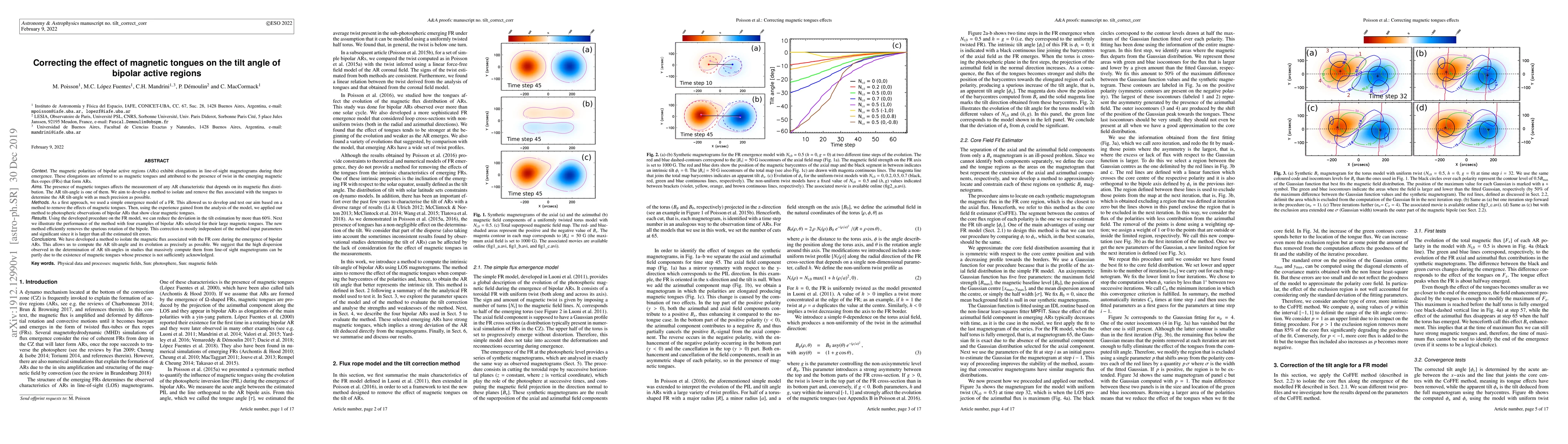 The magnetic polarities of bipolar active regions (ARs) exhibit elongations in line-of-sight magnetograms during their emergence. These elongations are referred to as magnetic tongues and attributed to the presence of twist in the emerging magnetic flux-ropes (FRs) that form ARs. The presence of magnetic tongues affects the measurement of any AR characteristic that depends on its magnetic flux distribution. The AR tilt-angle is one of them. We aim to develop a method to isolate and remove the flux associated with the tongues to determine the AR tilt-angle with as much precision as possible. As a first approach, we used a simple emergence model of a FR. This allowed us to develop and test our aim based on a method to remove the effects of magnetic tongues. Then, using the experience gained from the analysis of the model, we applied our method to photospheric observations of bipolar ARs that show clear magnetic tongues. Using the developed procedure on the FR model, we can reduce the deviation in the tilt estimation by more than 60%. Next we illustrate the performance of the method with four examples of bipolar ARs selected for their large magnetic tongues. The new method efficiently removes the spurious rotation of the bipole. This correction is mostly independent of the method input parameters and significant since it is larger than all the estimated tilt errors. We have developed a method to isolate the magnetic flux associated with the FR core during the emergence of bipolar ARs. This allows us to compute the AR tilt-angle and its evolution as precisely as possible. We suggest that the high dispersion observed in the determination of AR tilt-angles in studies that massively compute them from line-of sight magnetograms can be partly due to the existence of magnetic tongues whose presence is not sufficiently acknowledged.