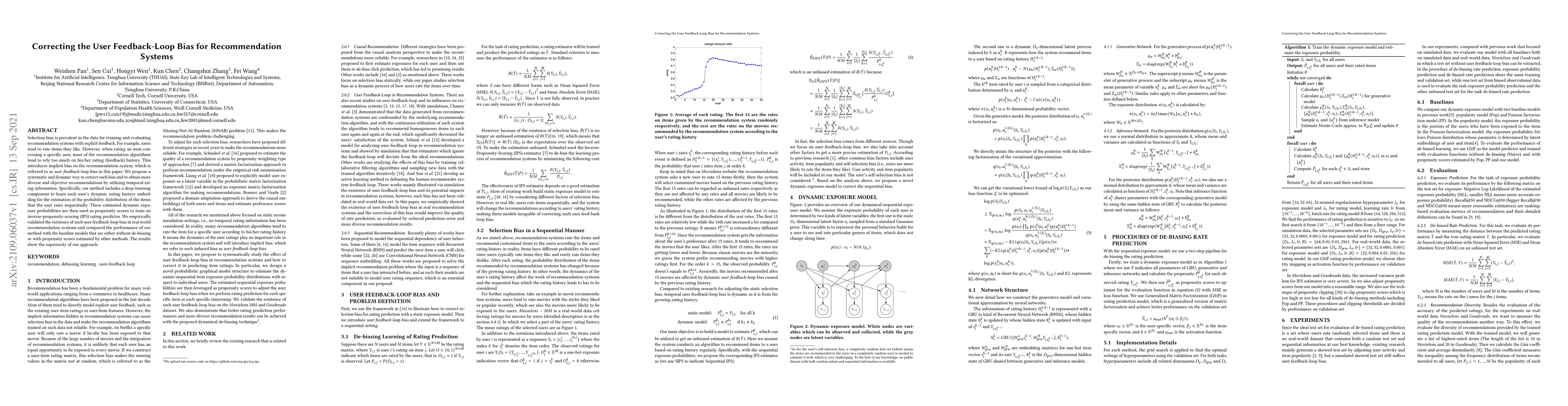 This paper proposes a method to correct user feedback-loop bias in recommendation systems, using temporal rating information and a deep-learning component to estimate dynamic rating history embeddings. The approach employs inverse-propensity-scoring to provide more diverse and objective recommendations, outperforming baseline models in empirical validation.