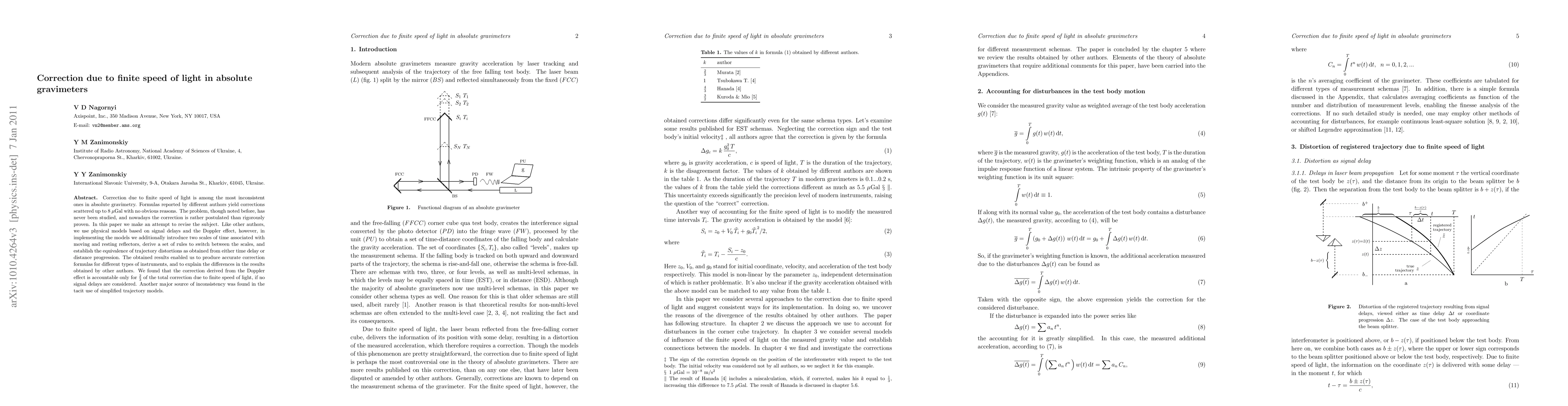 Researchers developed accurate correction formulas for absolute gravimeters, accounting for finite speed of light, and explained differences in previous results due to oversimplified trajectory models and the Doppler effect.
