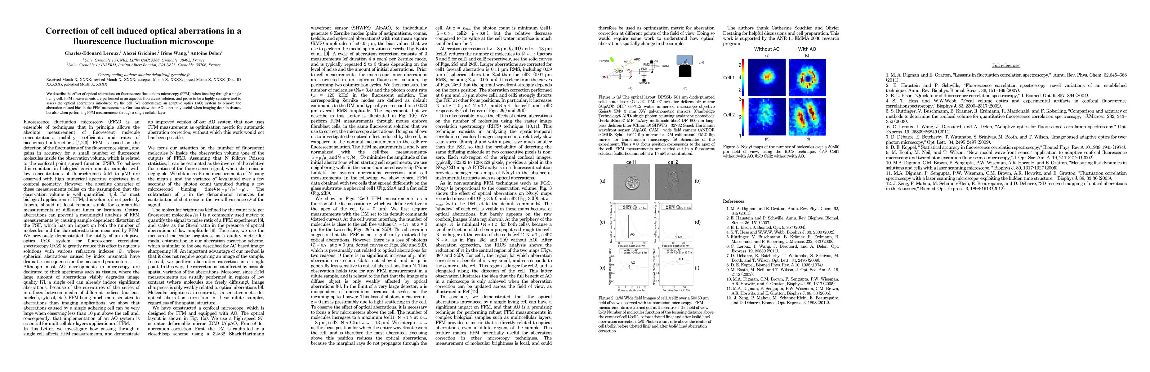 This paper investigates the impact of optical aberrations on fluorescence fluctuation microscopy (FFM) through living cells and introduces an adaptive optics (AO) system to correct these aberrations, enhancing the accuracy of FFM measurements and enabling its application to complex three-dimensional multicellular samples.