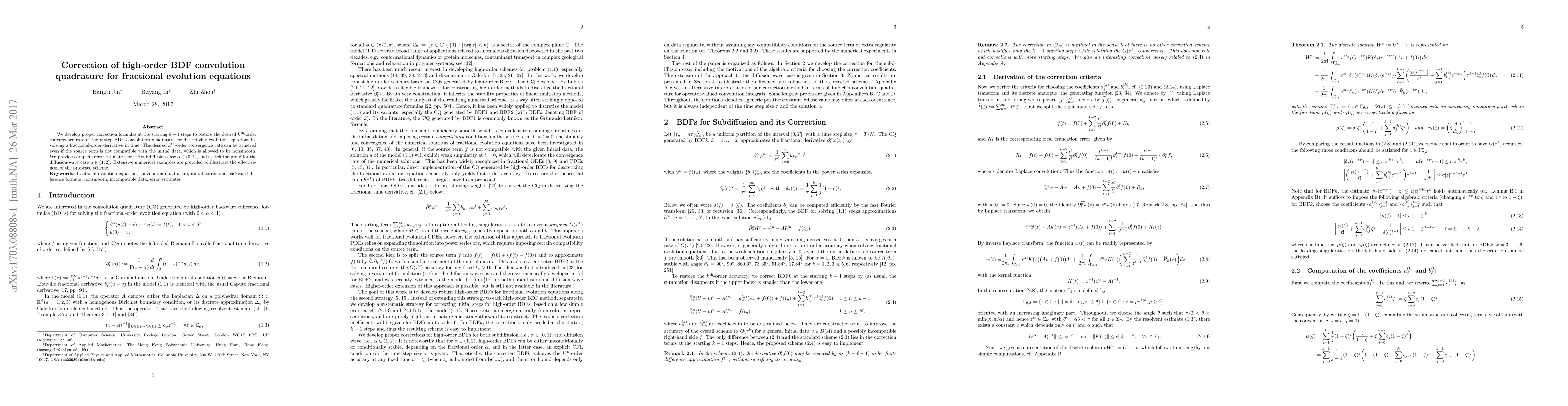This paper proposes correction formulas to maintain the $k^{\rm th}$-order convergence rate of $k$-step BDF convolution quadrature for fractional evolution equations, even with nonsmooth initial data. It provides error estimates for subdiffusion cases and numerical examples to demonstrate the method's effectiveness.